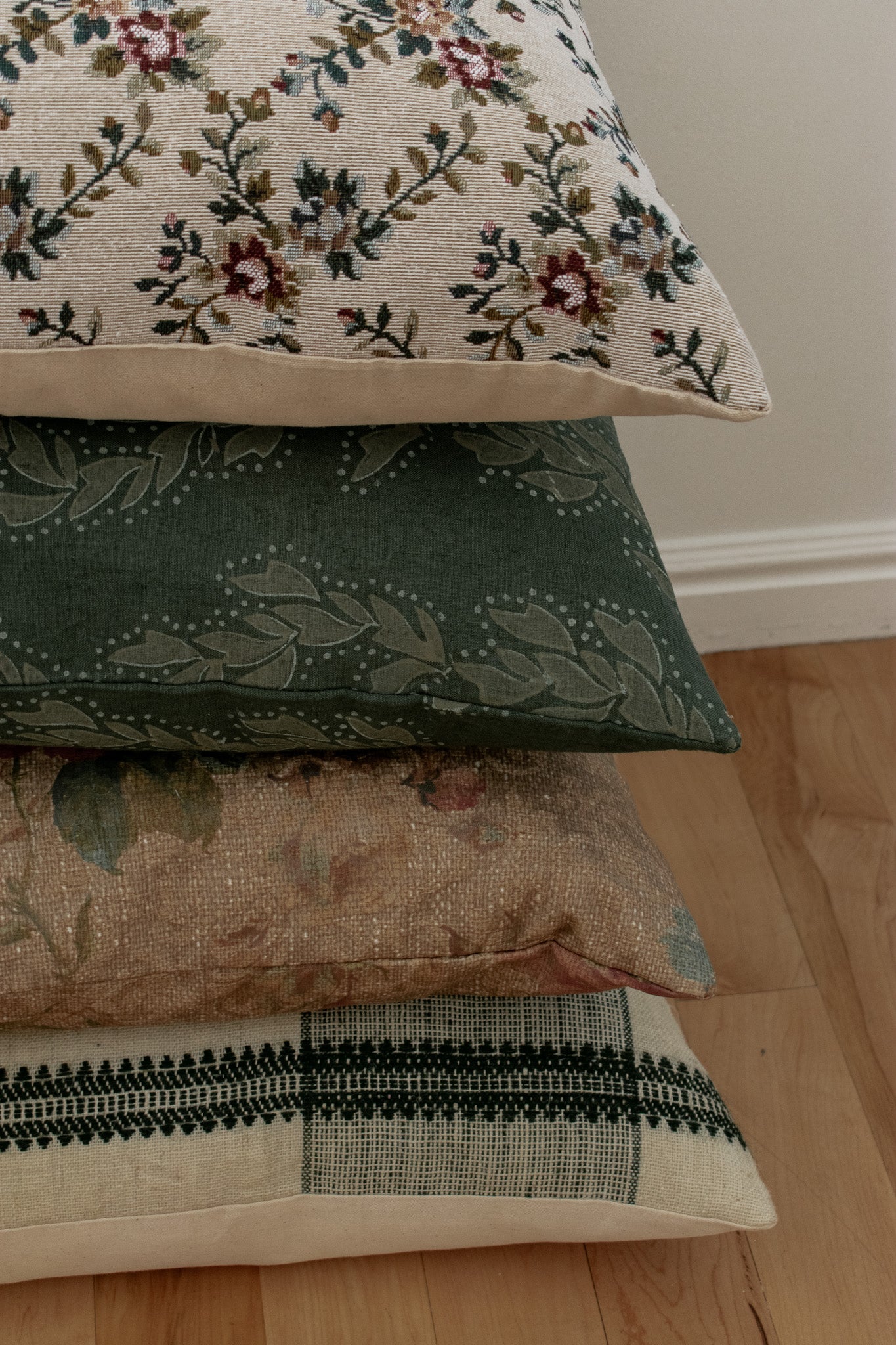 -Colors: A sage green block print on a deep forest green background