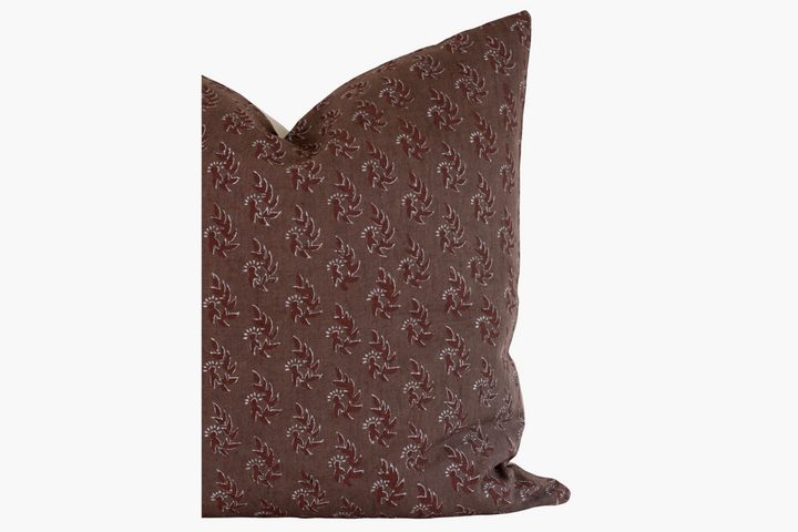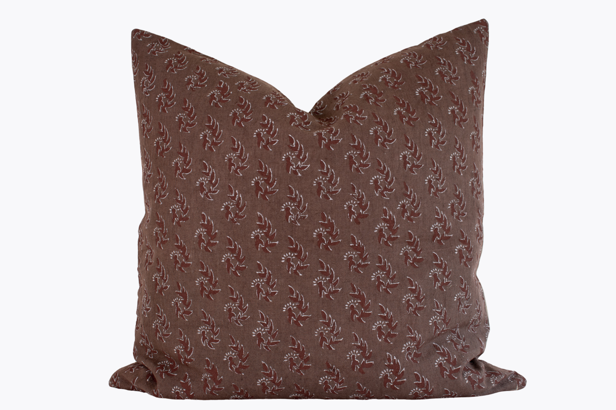 Indian Block Print Pillow Cover - Brownstone and Ivory