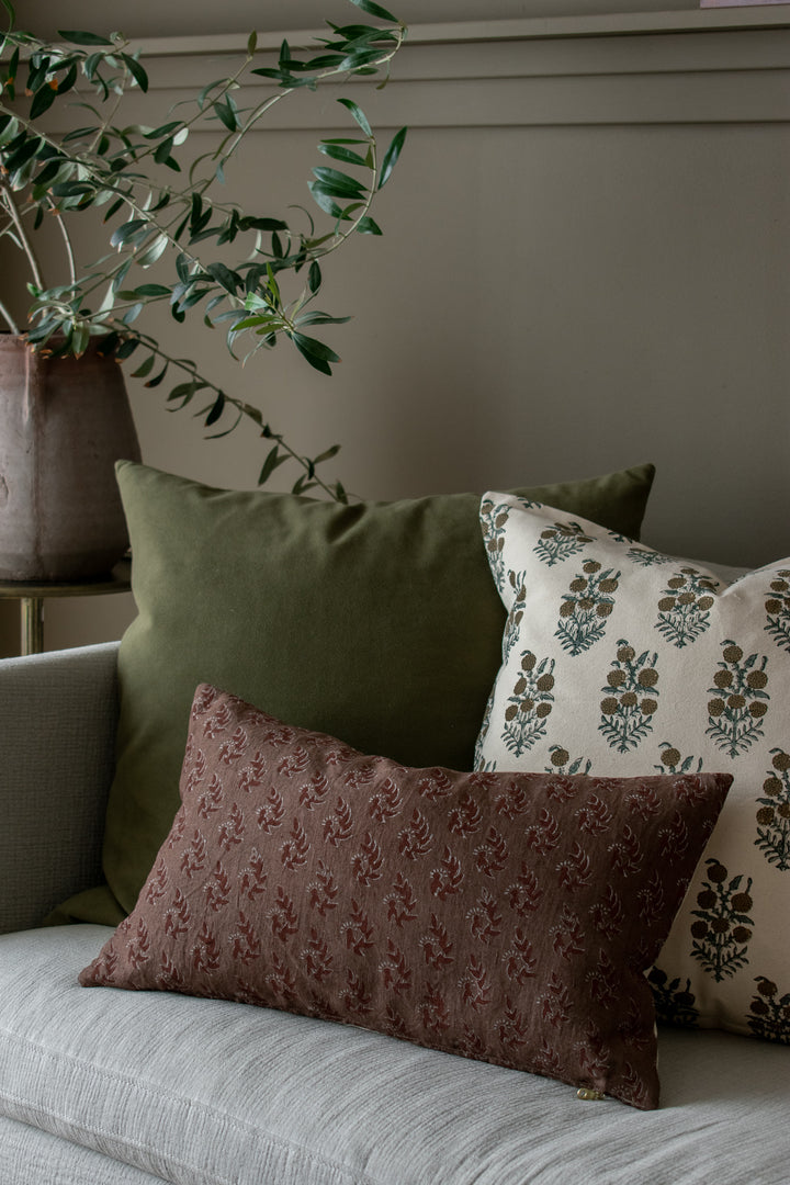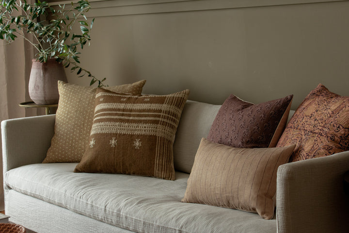 Our Indian Block Print Pillows are a true labor of love. We designed each one and had them hand block printed by our talented artisans on luxuriously soft, 100% natural linen. Their rich colors and intricate details elevate any space and add a gorgeous cultural dimension to any room!