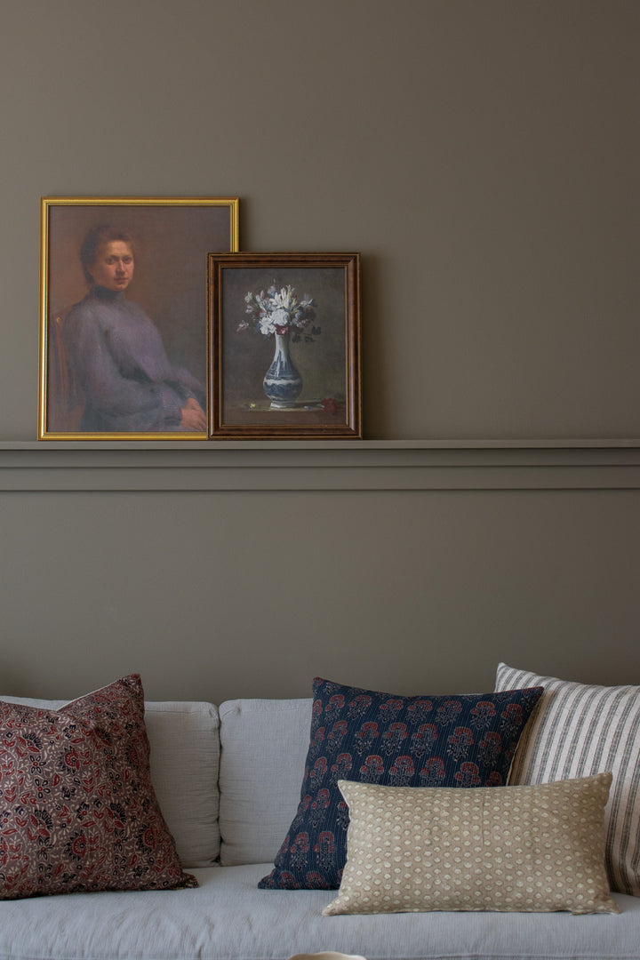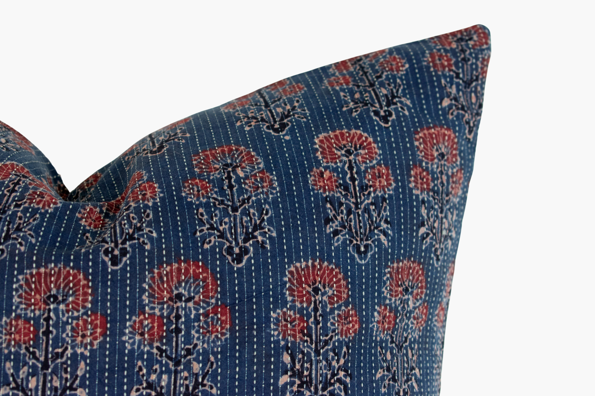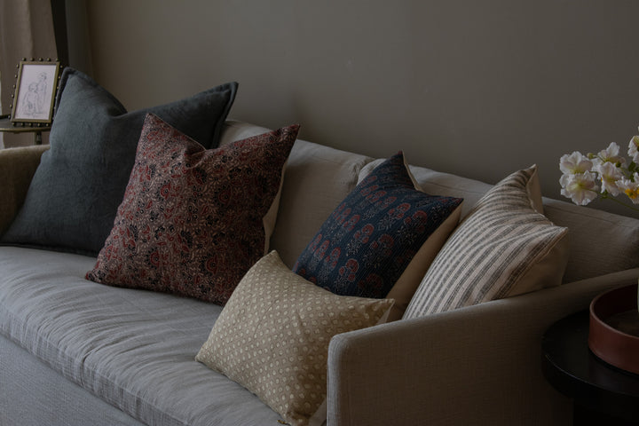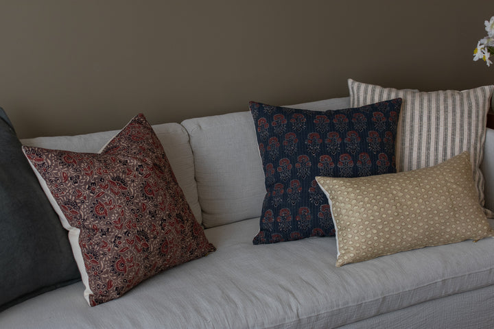Vintage Indian Block Print Pillow Cover - Indigo, Rust