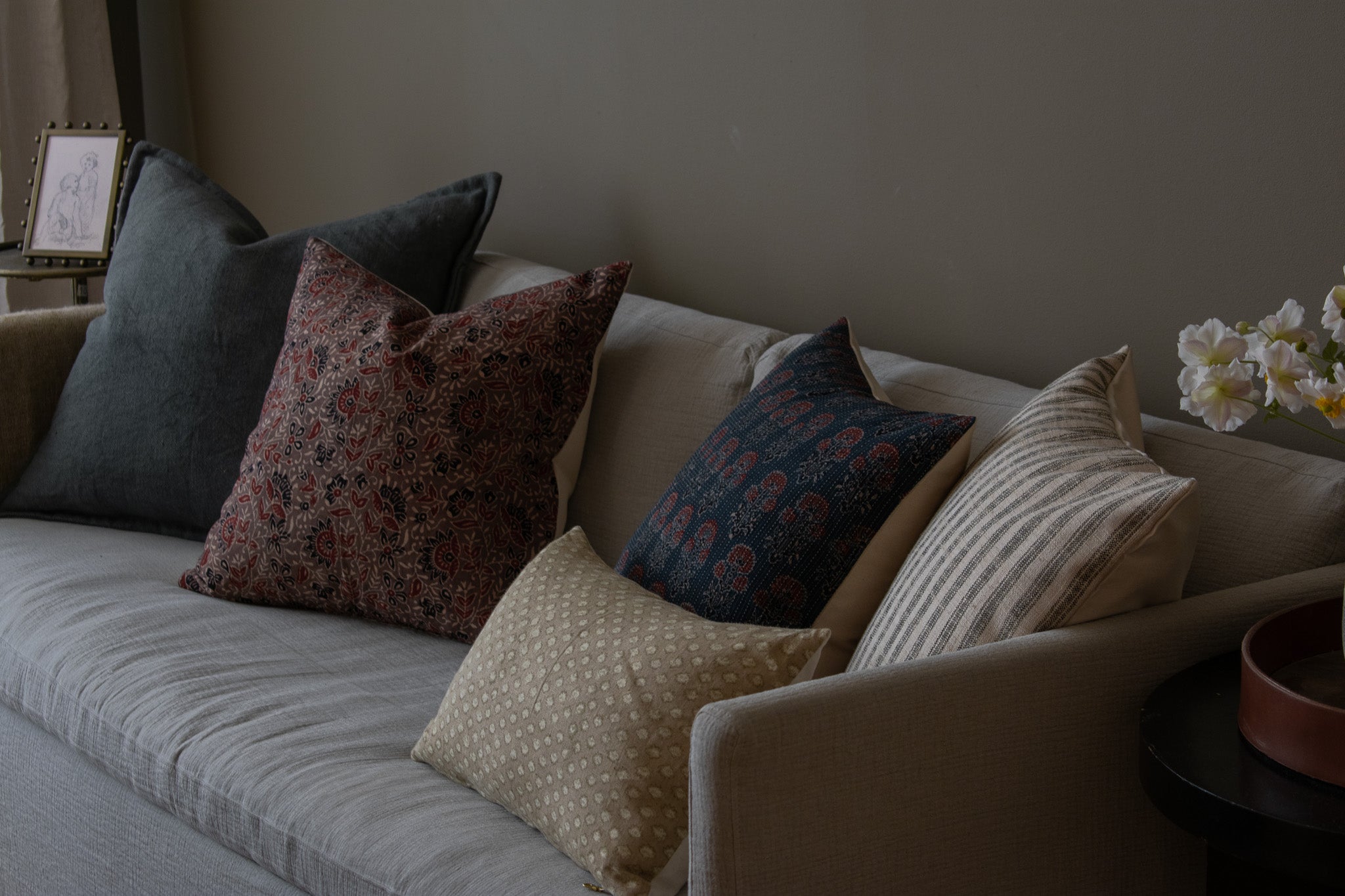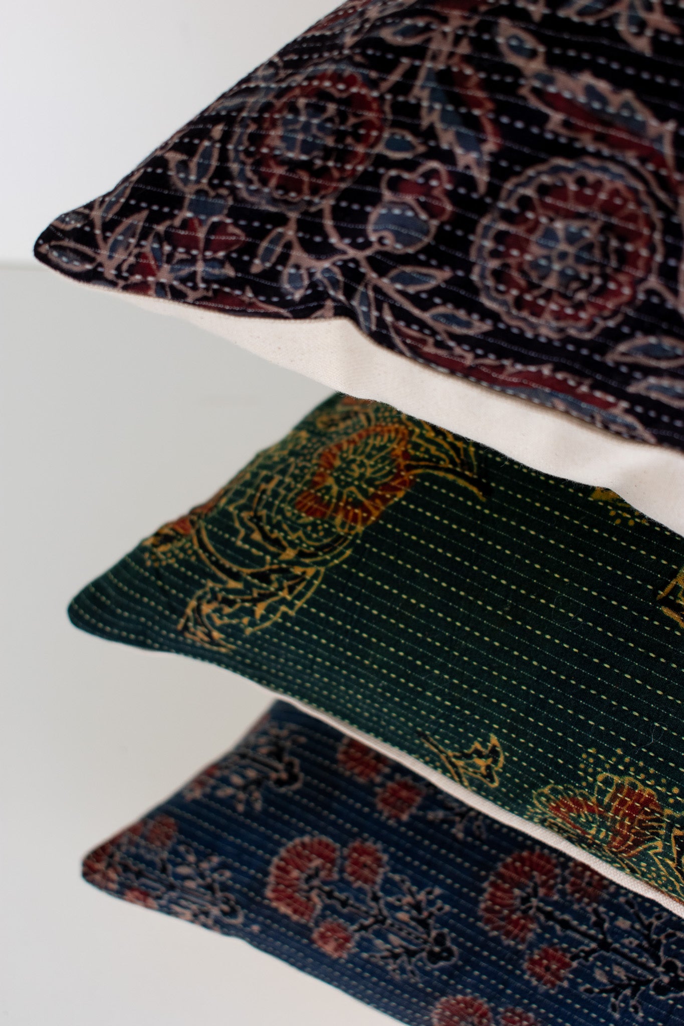 This beautiful vintage block print fabric is one of a kind and limited stock, and once it's gone it's gone for good. Its rich colors and intricate details elevate any space and add a gorgeous cultural dimension to any room!