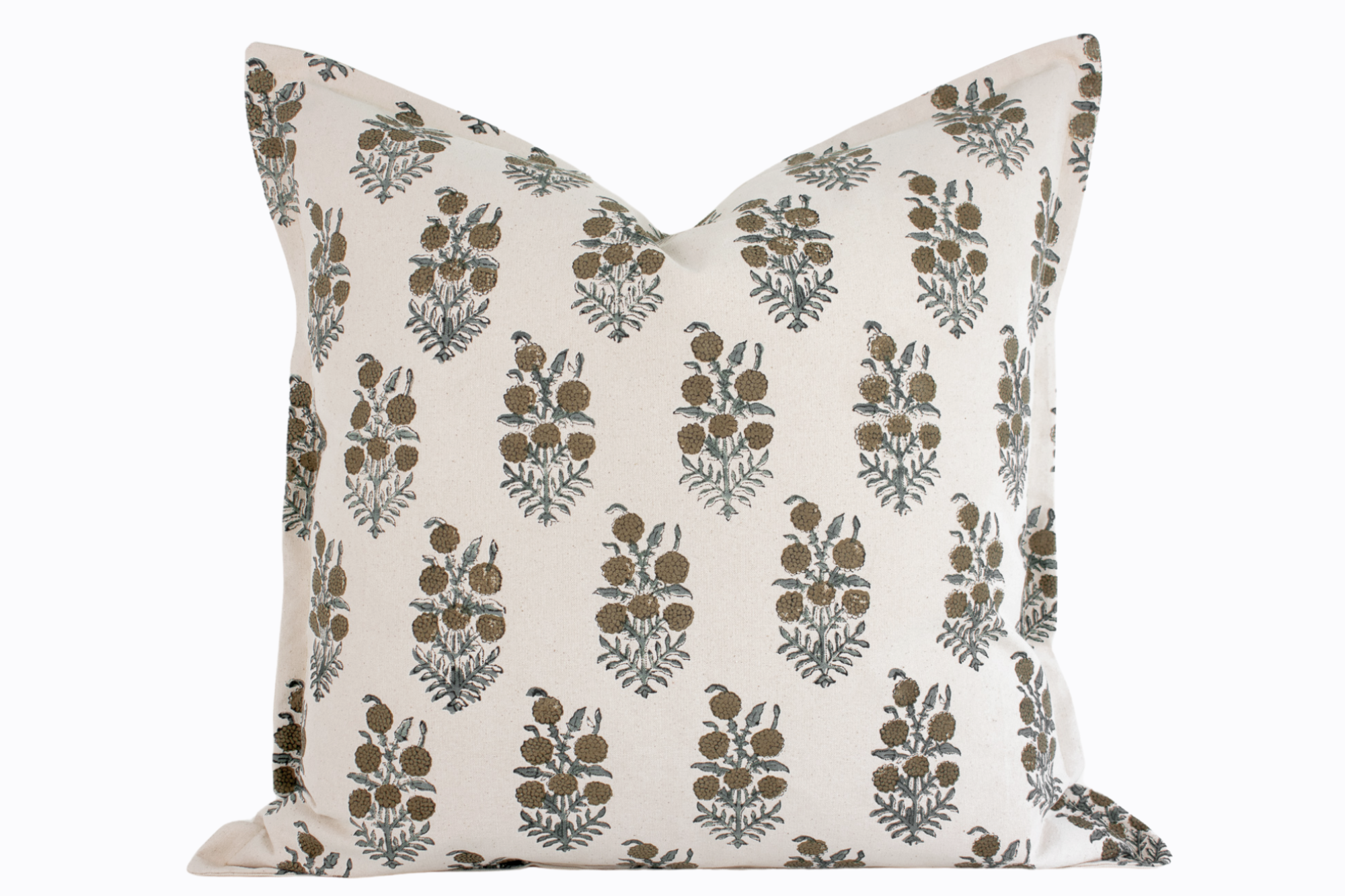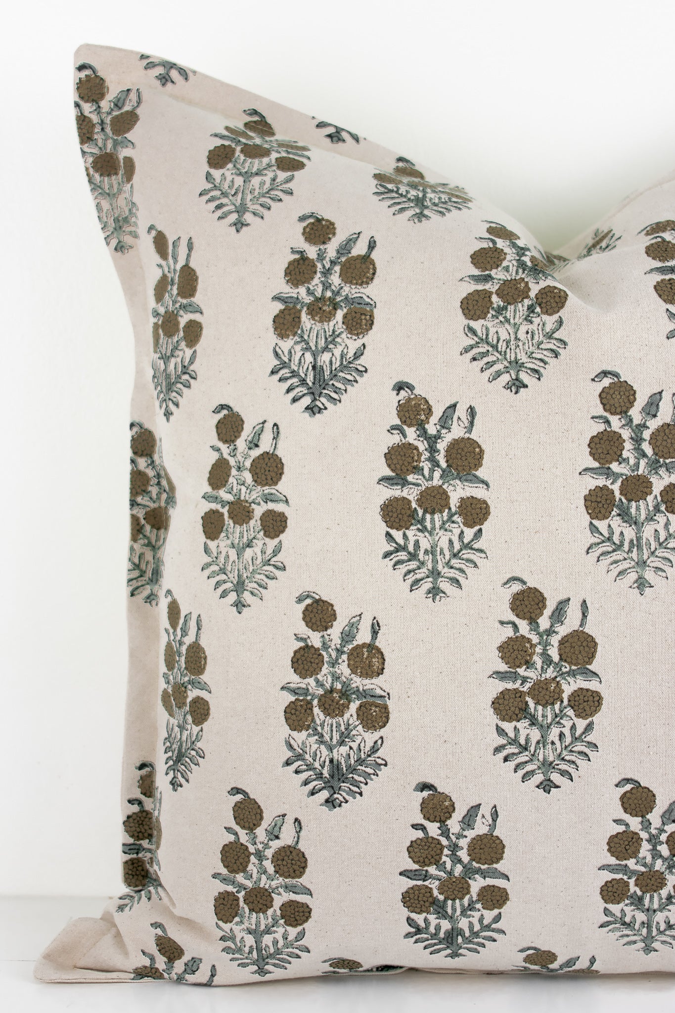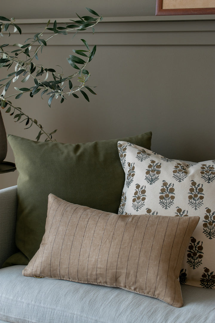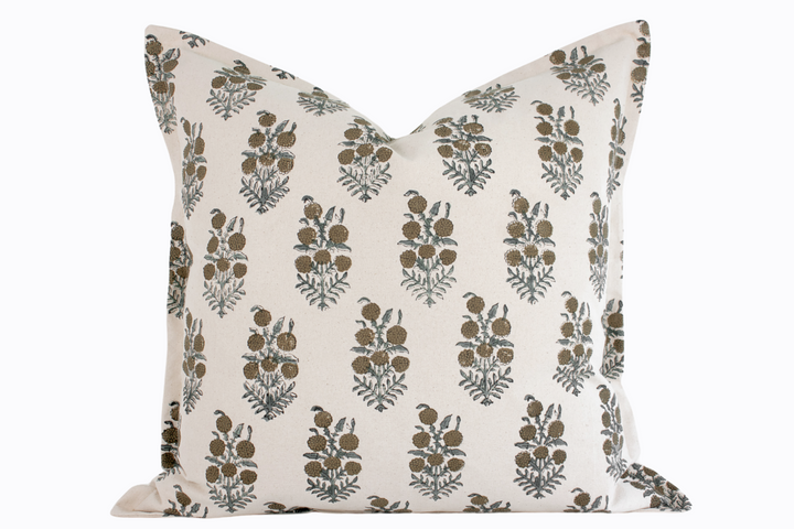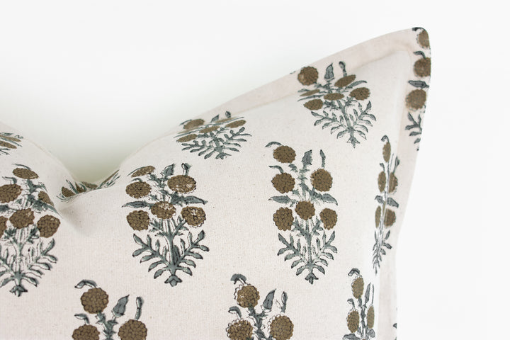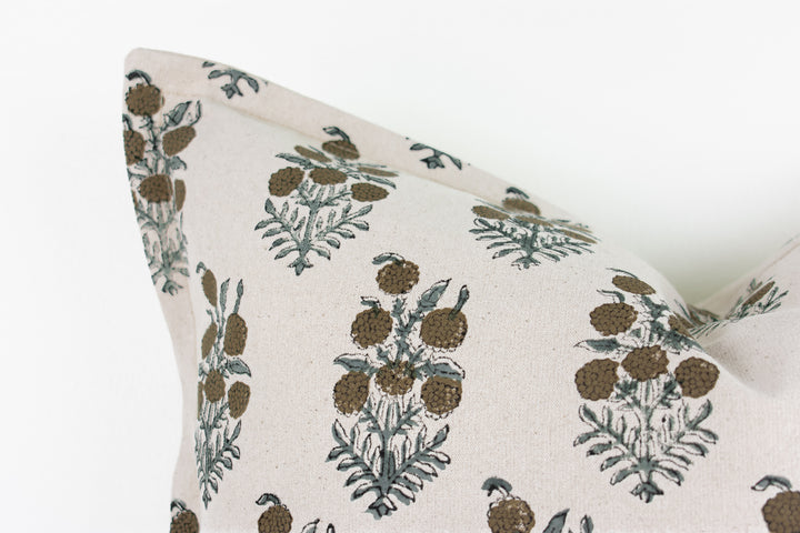 Elsie Indian Block Print Pillow Cover - Tan, Sage, Natural