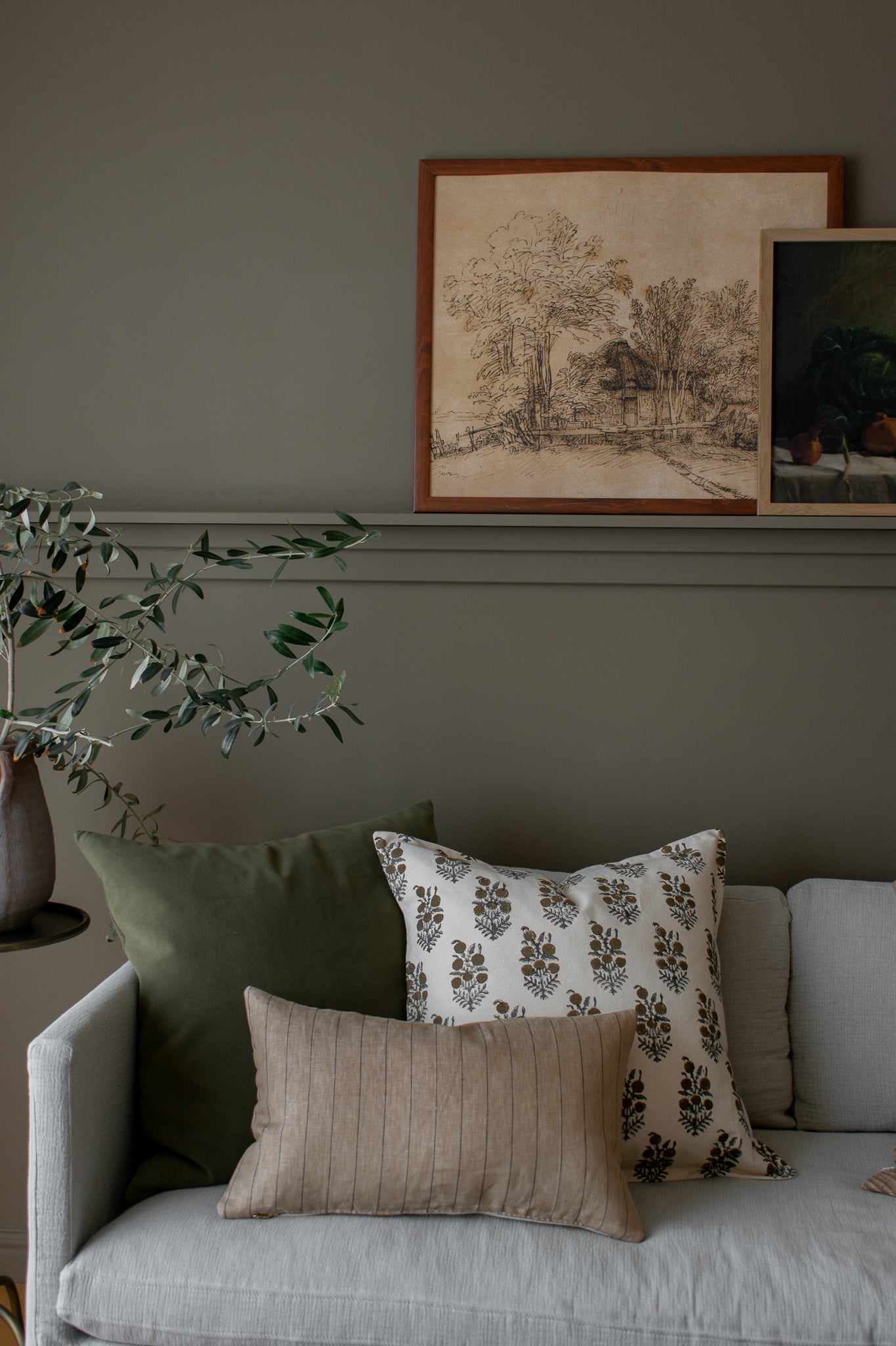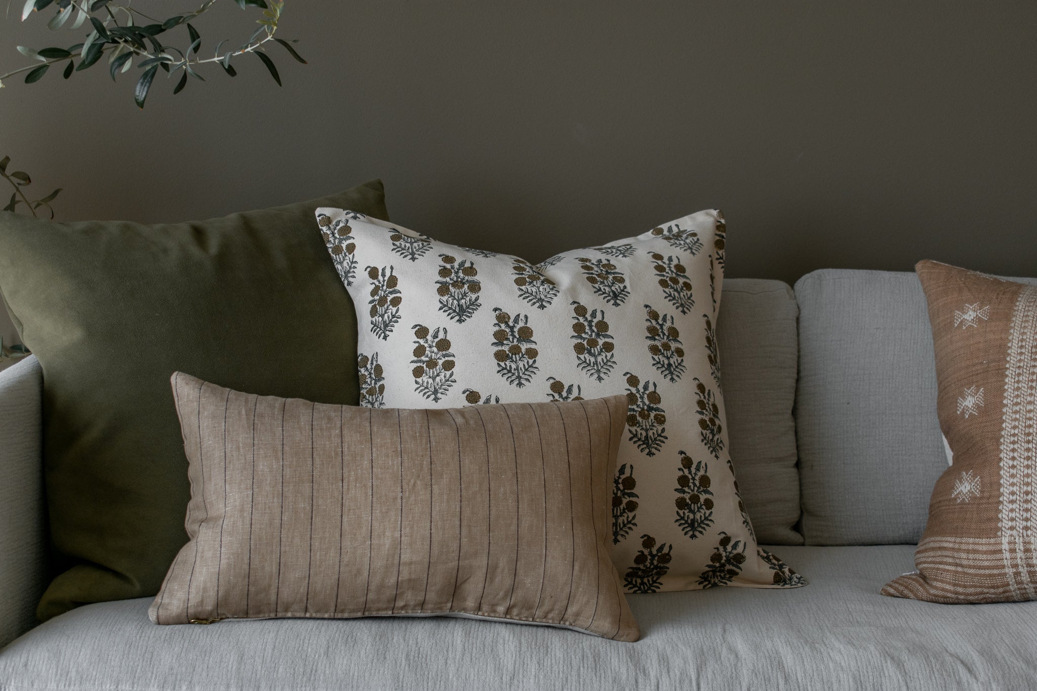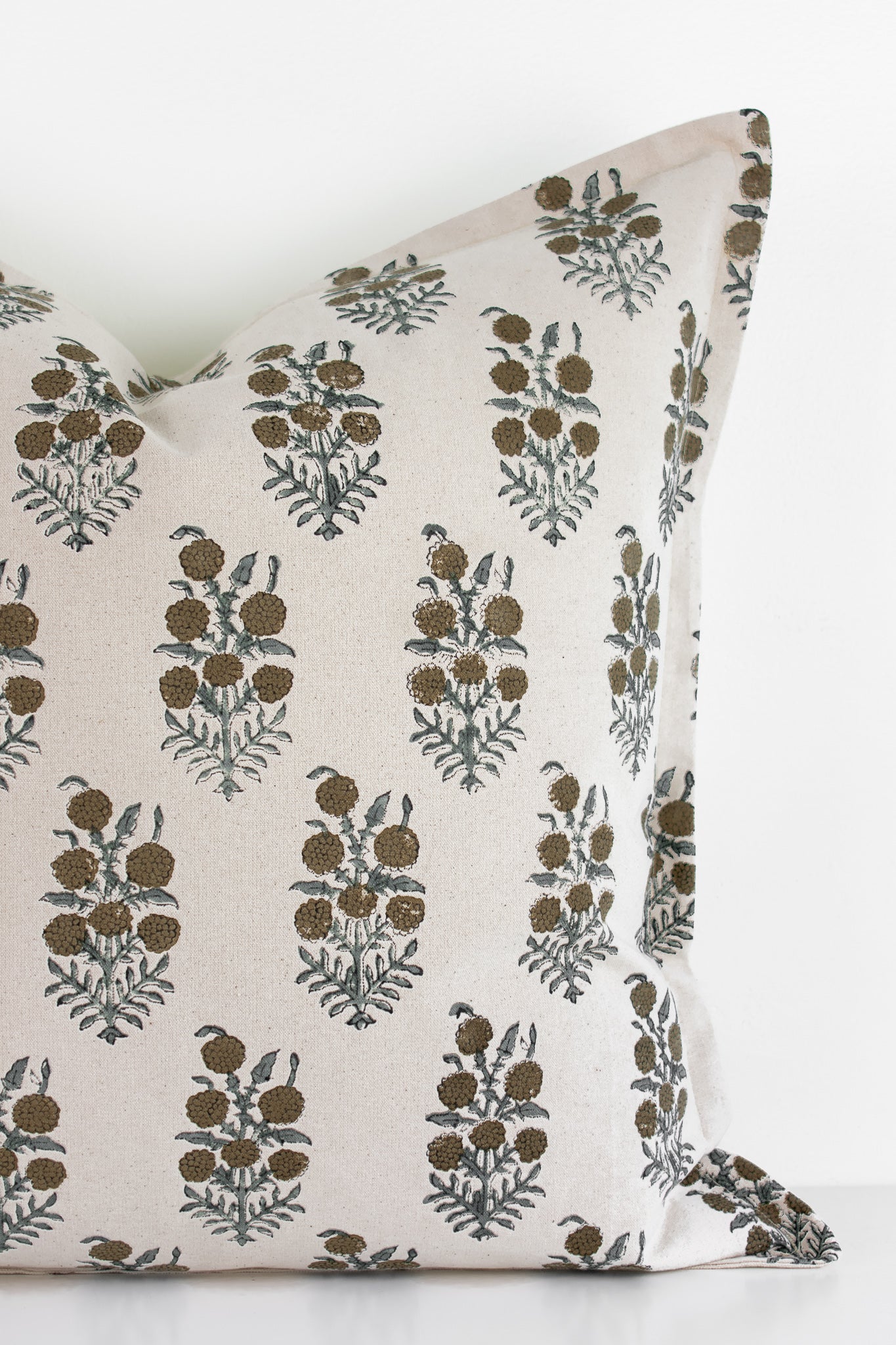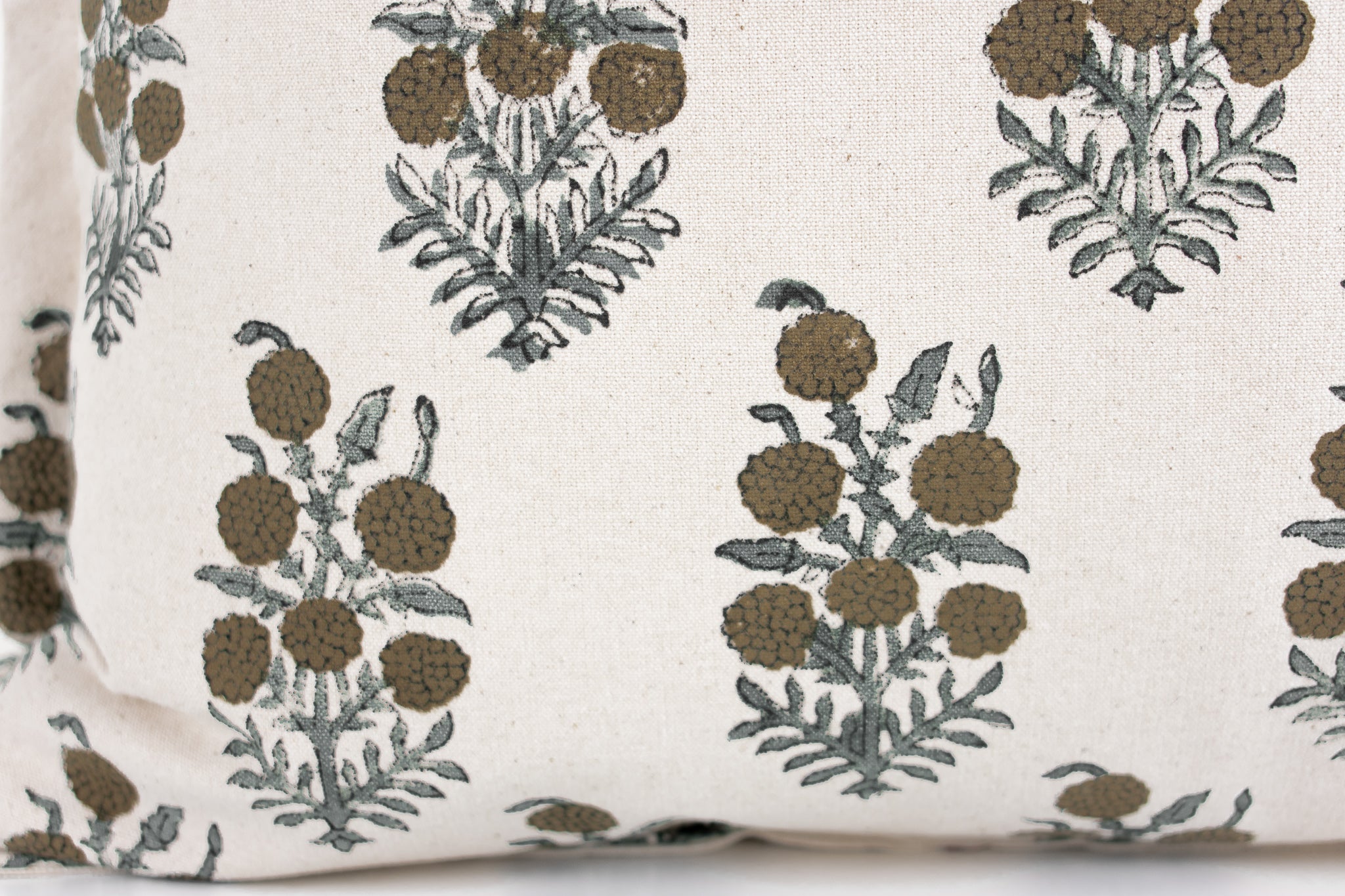 Elsie Indian Block Print Pillow Cover - Tan, Sage, Natural