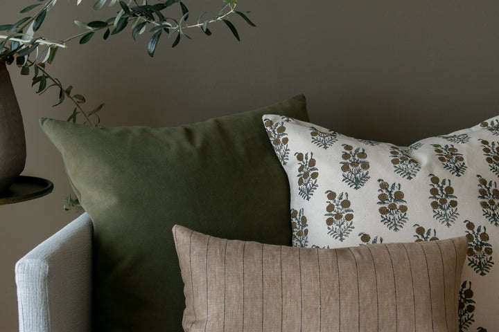 Indian Block Print Pillow Cover - Tan, Sage, Natural