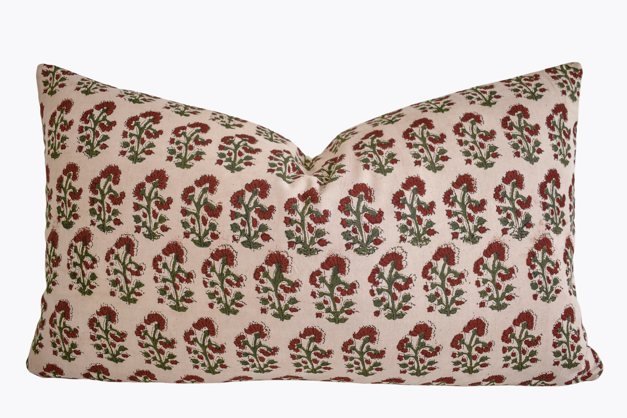 Indian Block Print Pillow Cover - Beige, Rust, Olive