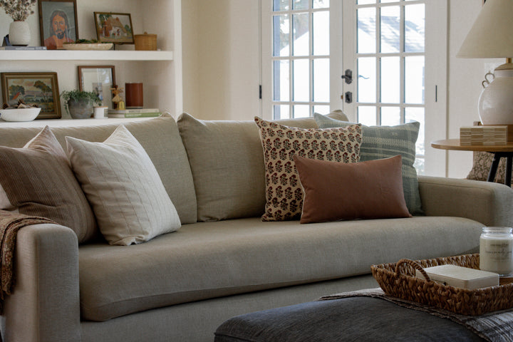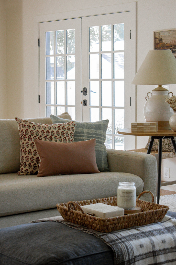 Our Indian Block Print Pillows are a true labor of love. We designed each one and had them hand block printed by our talented artisans on luxuriously soft, 100% natural linen. Their rich colors and intricate details elevate any space and add a gorgeous cultural dimension to any room!
