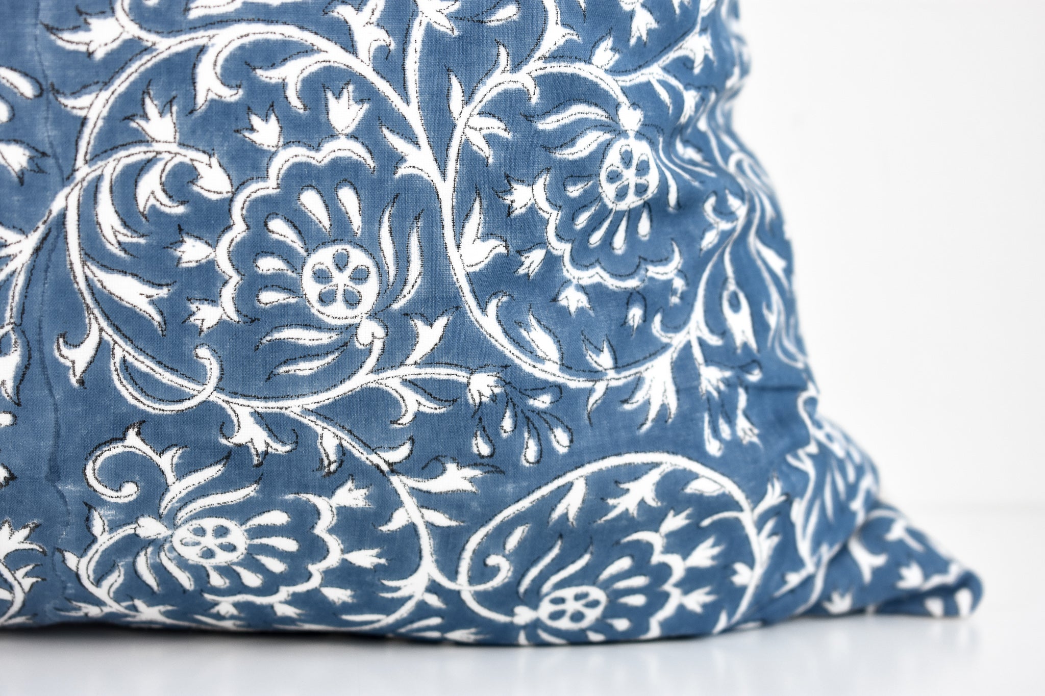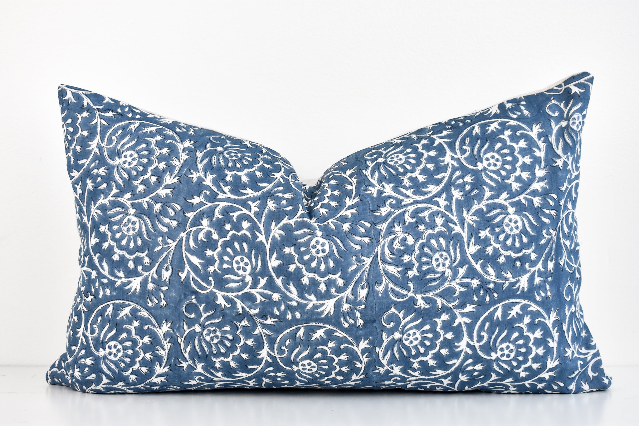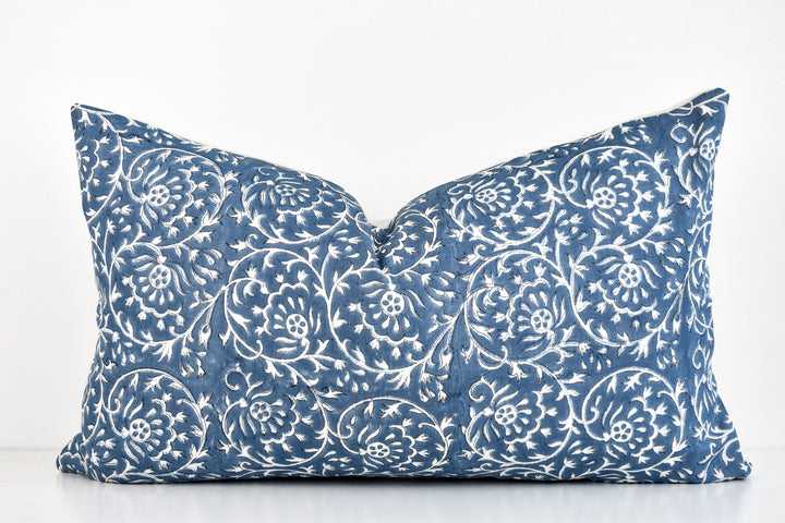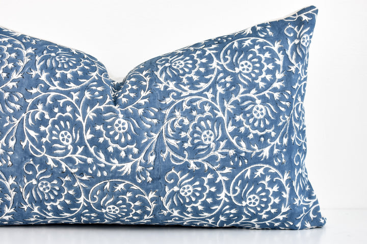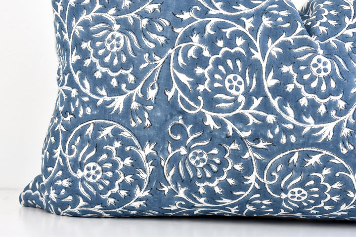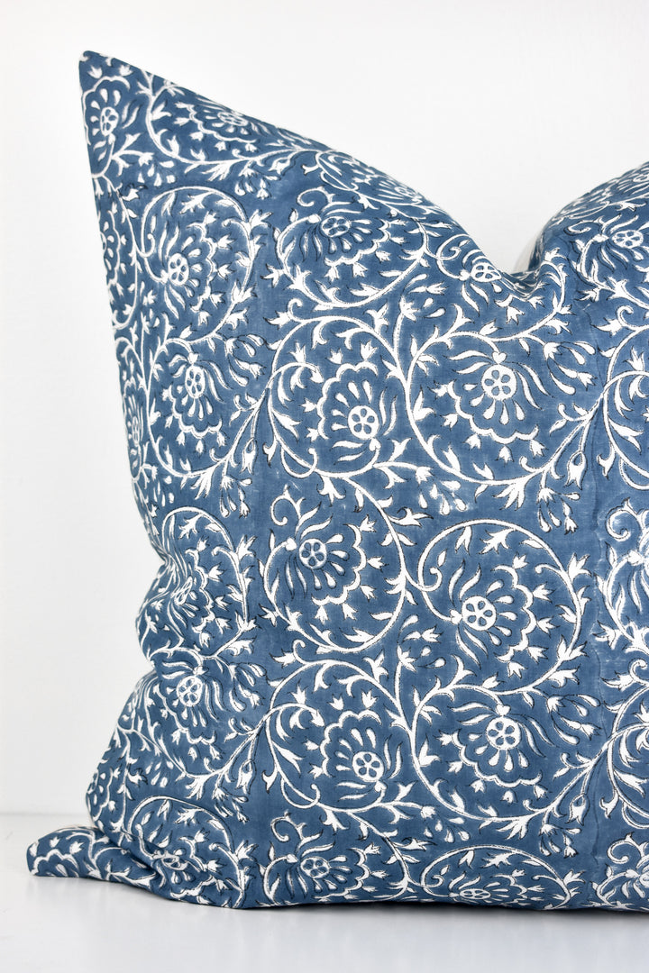 Indian Block Print Pillow Cover - Ocean Blue and Ivory