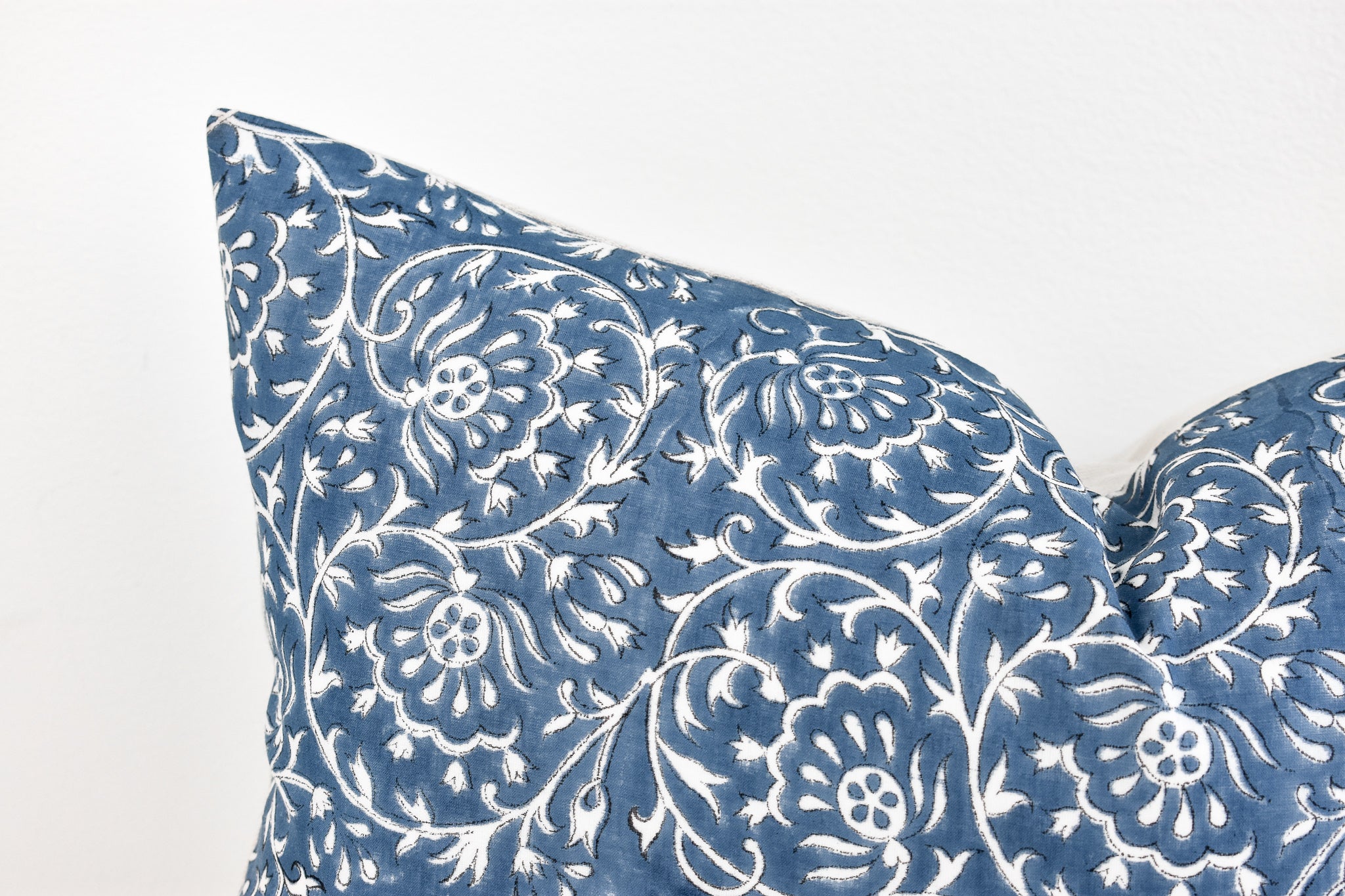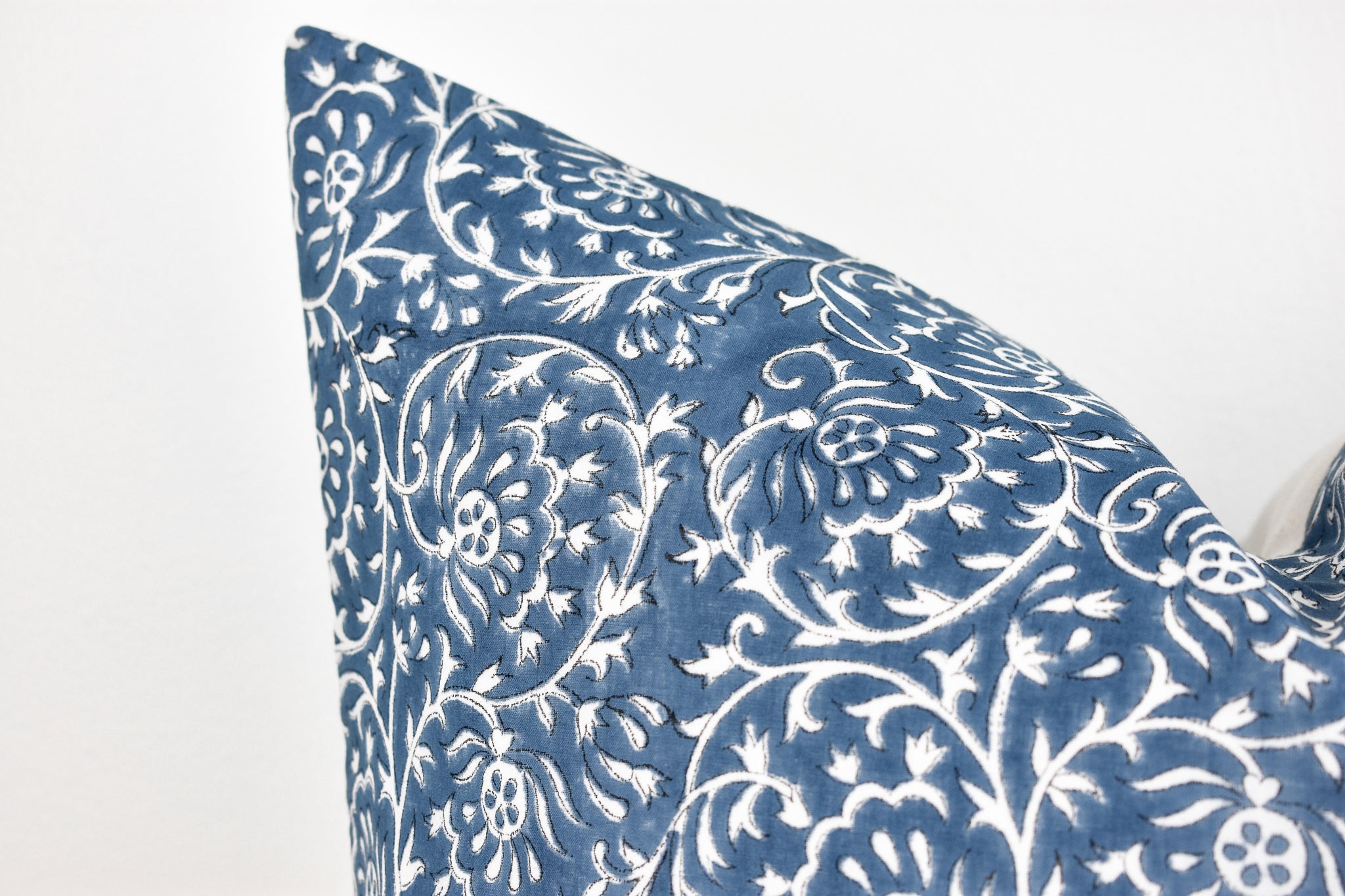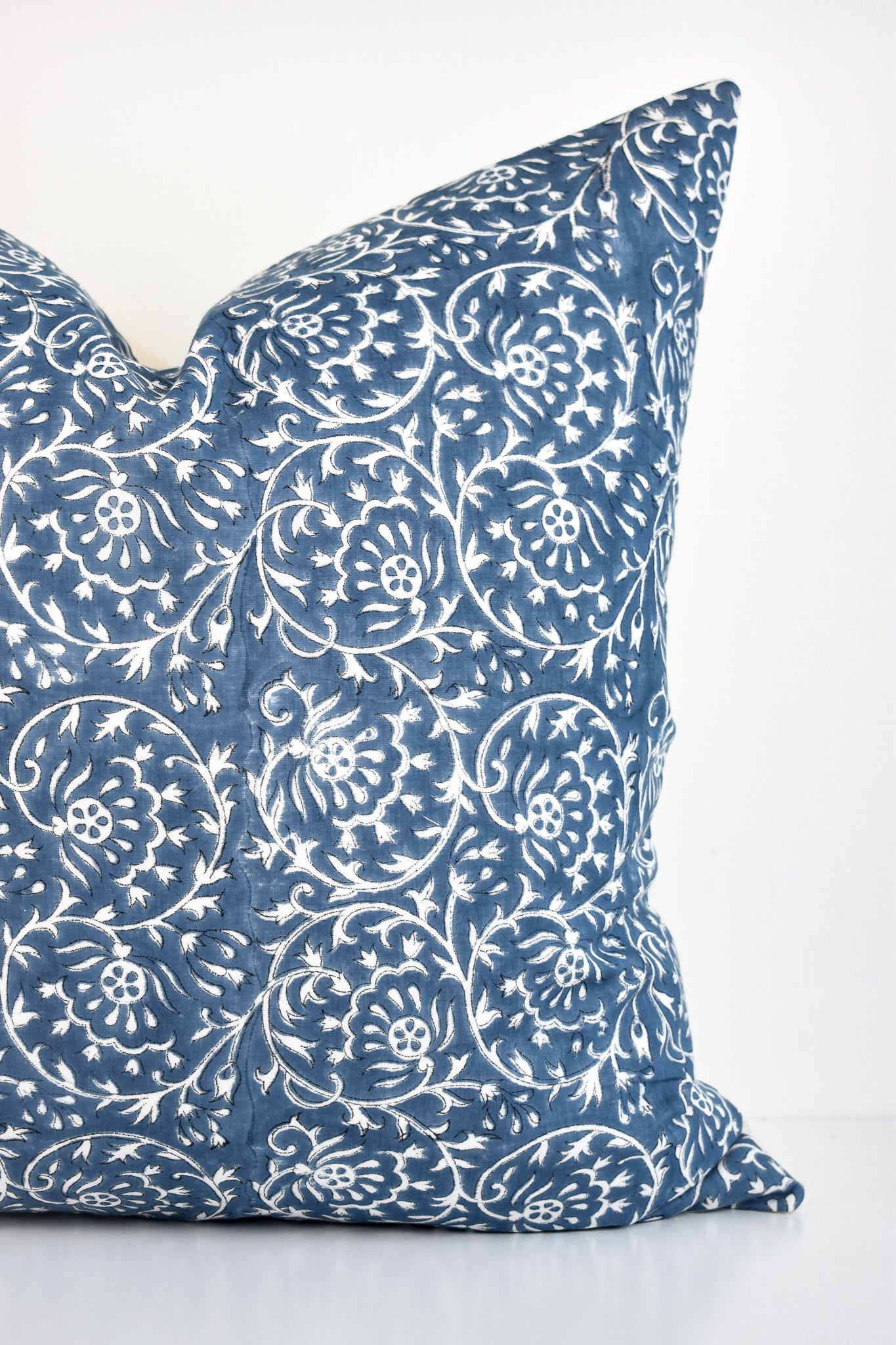 Indian Block Print Pillow Cover - Ocean Blue and Ivory