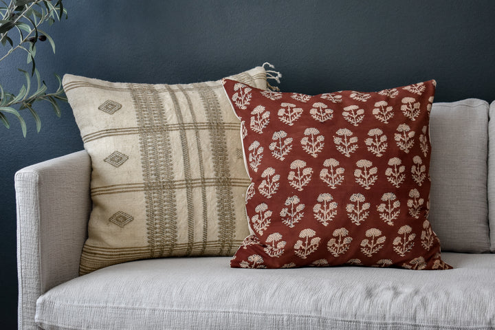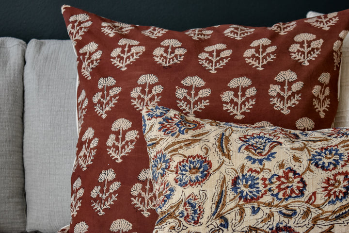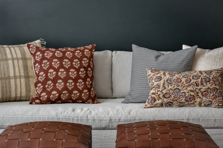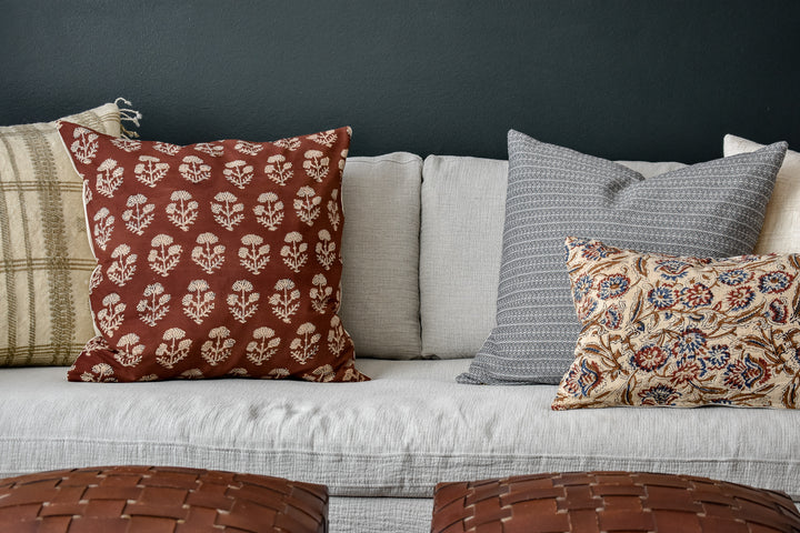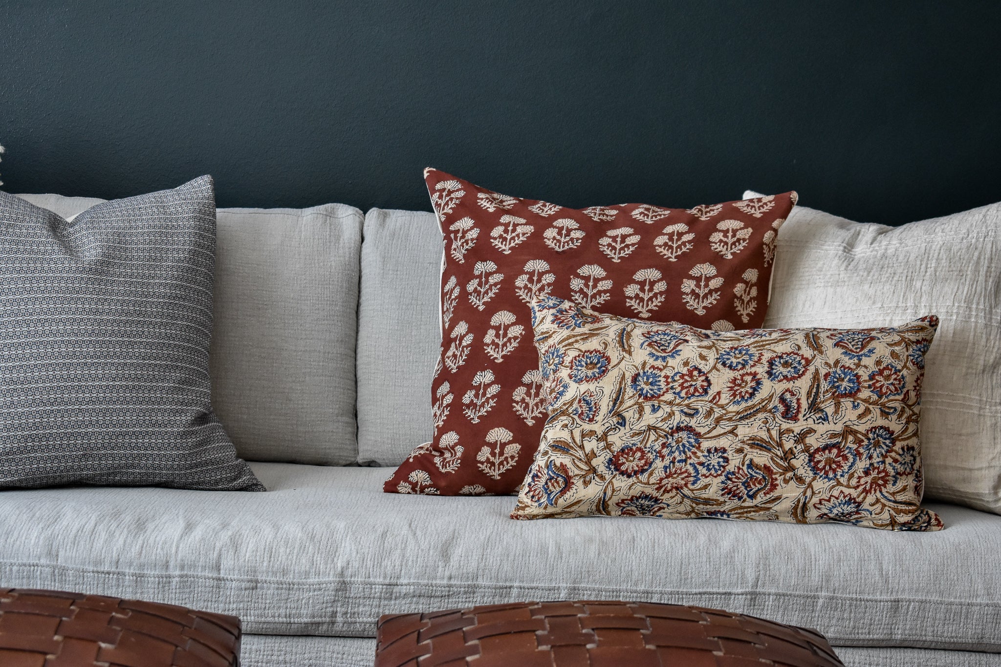 Our Indian Block Print Pillows are a true labor of love. Each is completely one of a kind and can't be found anywhere else in the world. Their rich colors and intricate details elevate any space and add a gorgeous cultural dimension to any room!