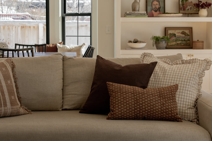 Our Indian Block Print Pillows are a true labor of love. We designed each one and had them hand block printed by our talented artisans on luxuriously soft, 100% natural linen. Their rich colors and intricate details elevate any space and add a gorgeous cultural dimension to any room!