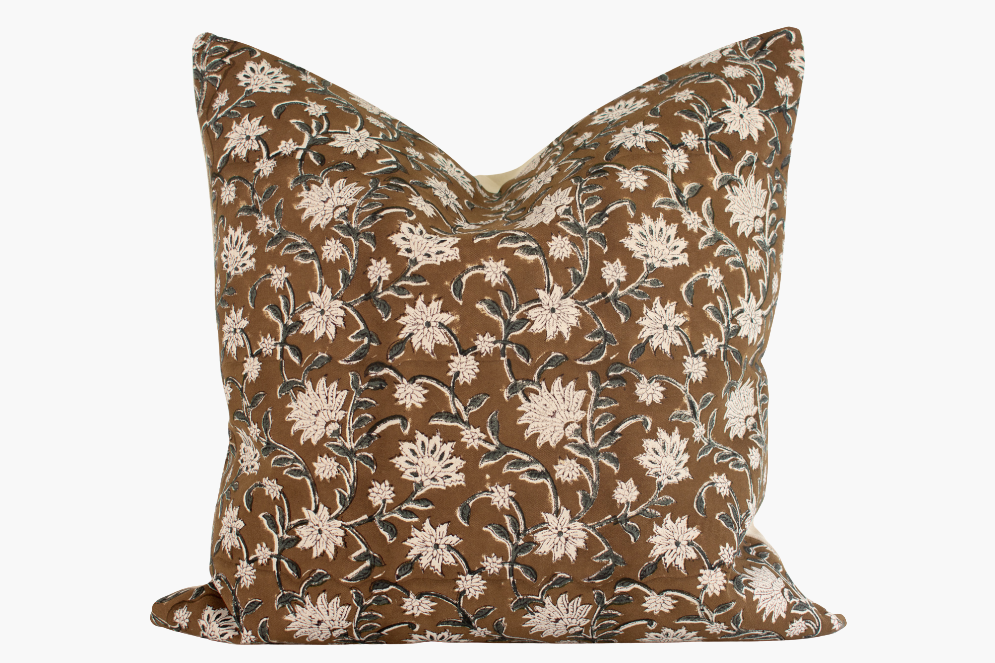 (1) 14" x 20" Indian Block Print Pillow Cover - Brownstone and Ivory