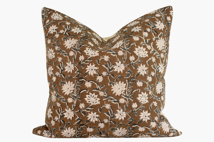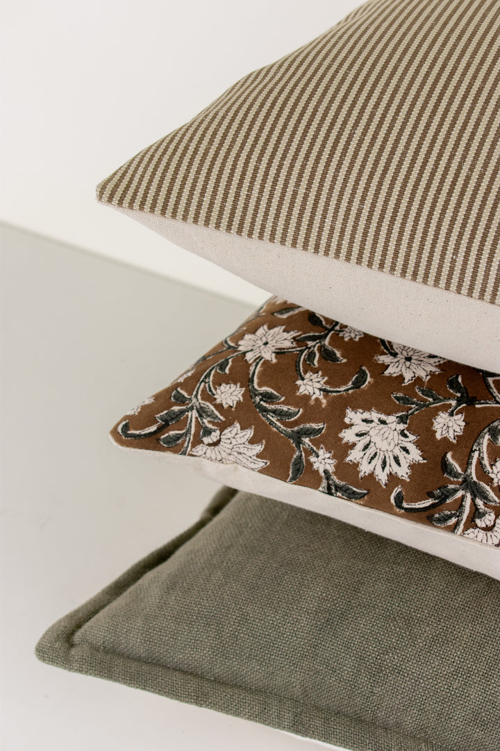 (1) 20" x 20" Carla Indian Block Print Pillow Cover - Tan, Sage, Natural