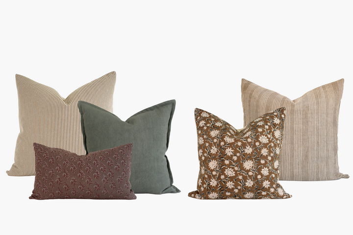 This beautiful sofa pillow combo is made up of 5 of our pillow covers. This combination includes: