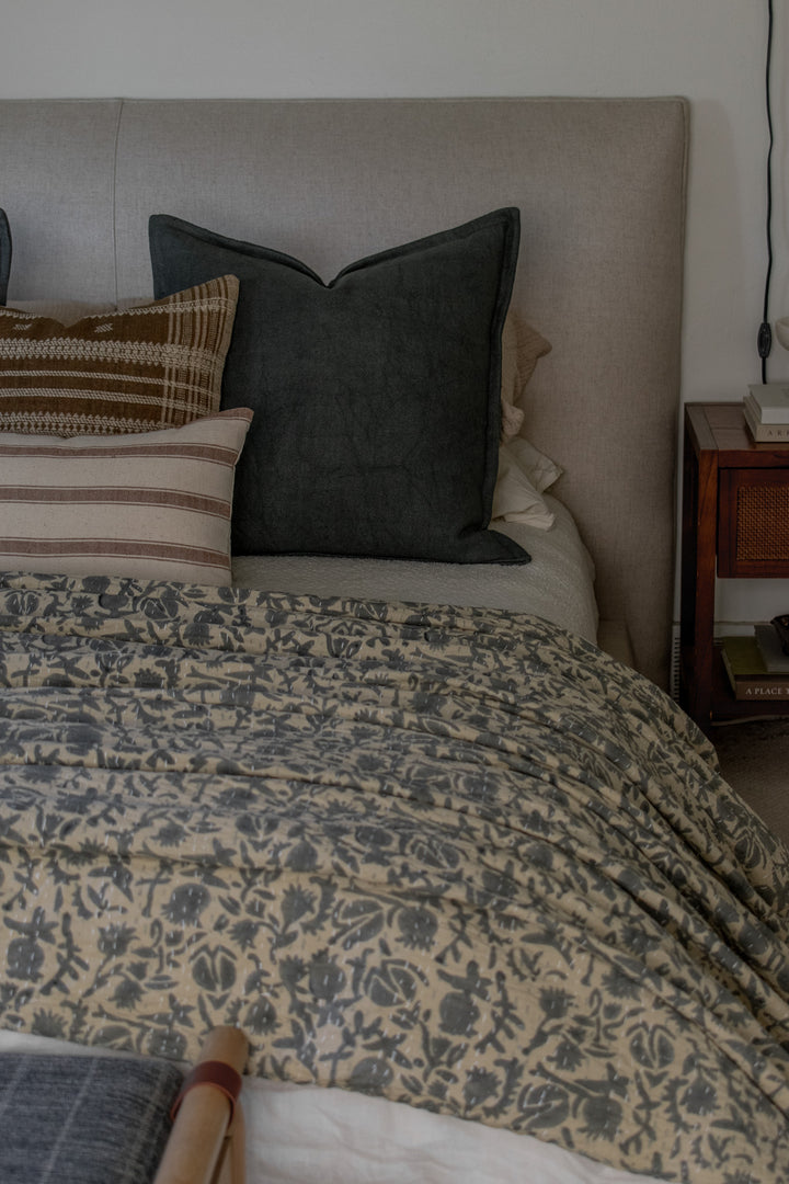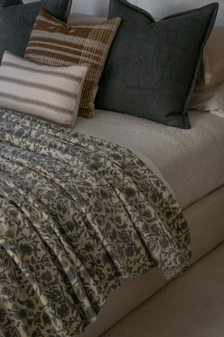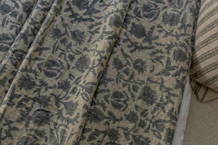 PRE-ORDER Selma Kantha Quilt in Beige and Pewter - King/Queen Sized