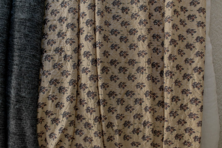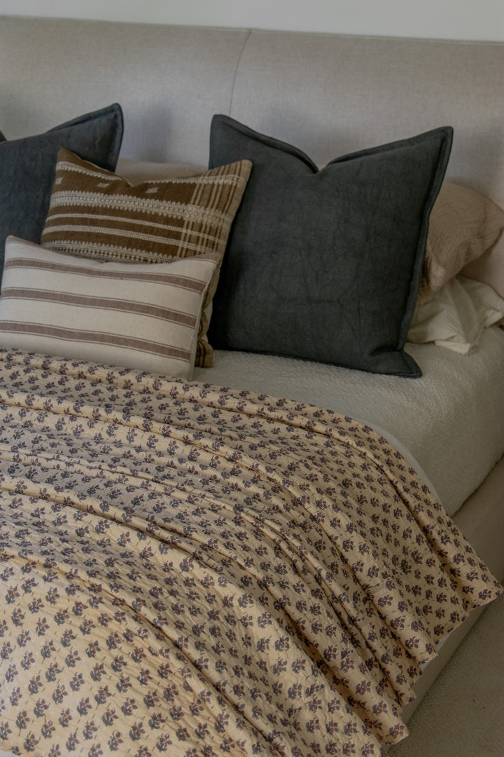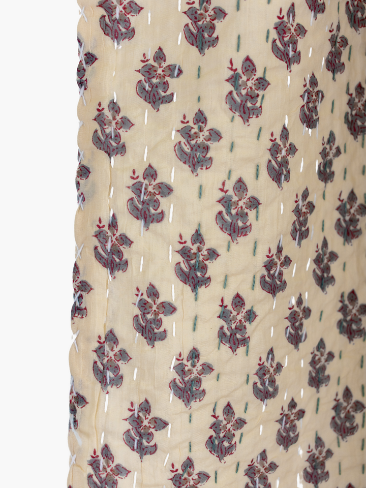 Leticia Kantha Quilt in Cream, Pewter, Brownstone - King/Queen Sized