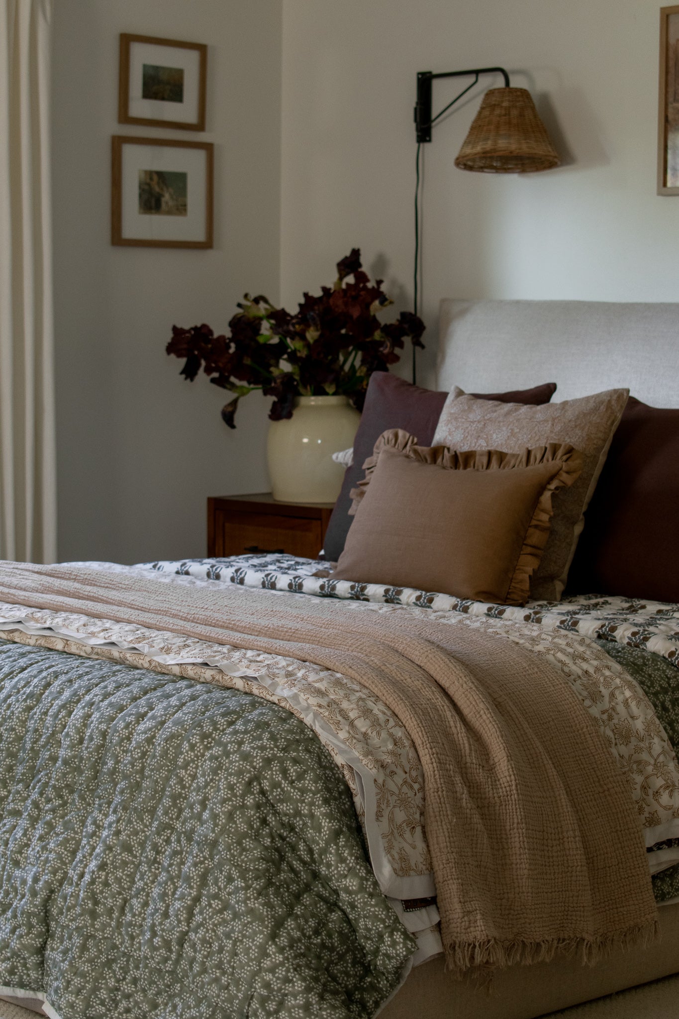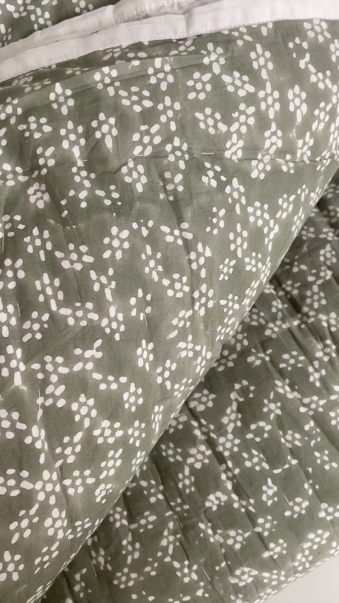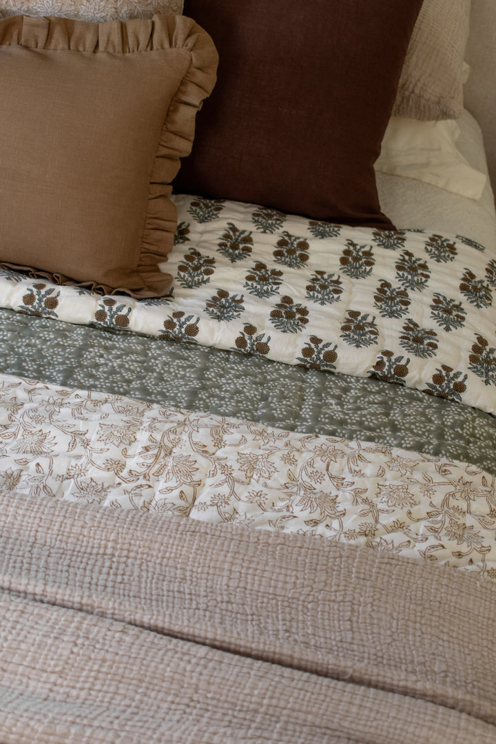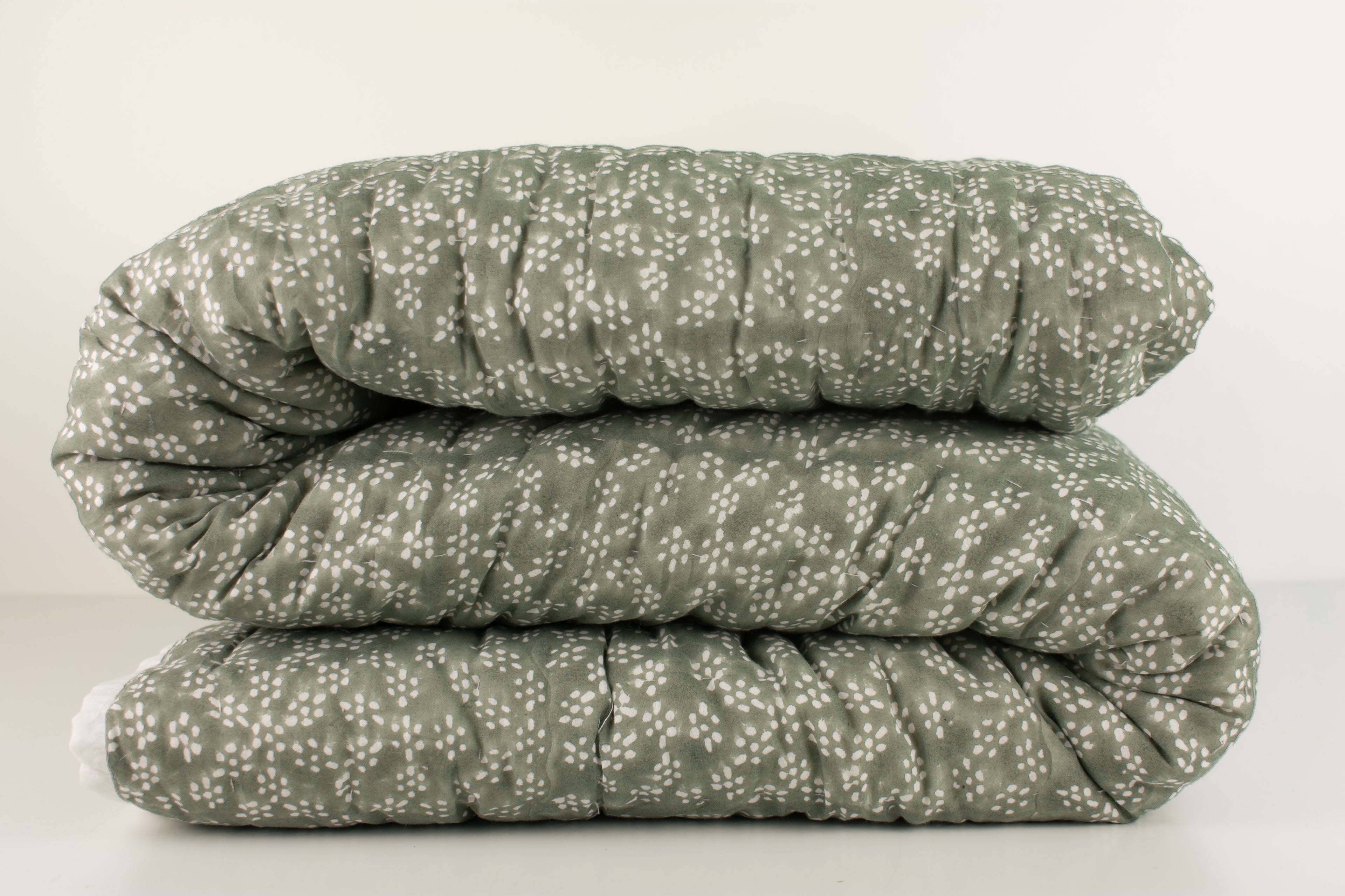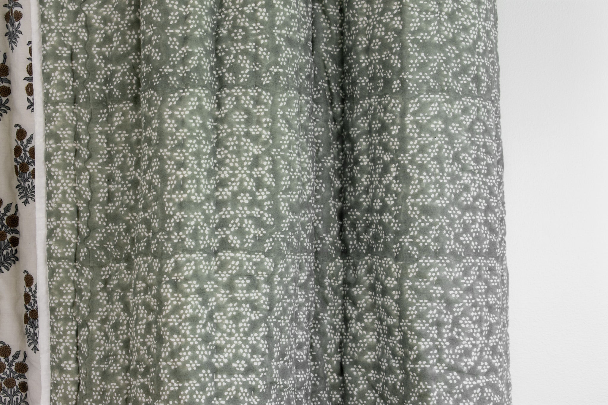 PRE-ORDER Kimberly Double Sided Block Print Padded Quilt in Sage - King/Queen Sized
