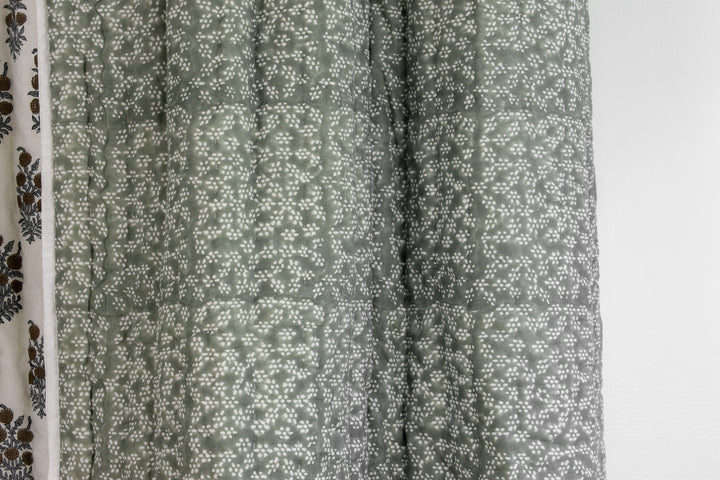 Kimberly Double Sided Block Print Padded Quilt in Sage - King/Queen Sized