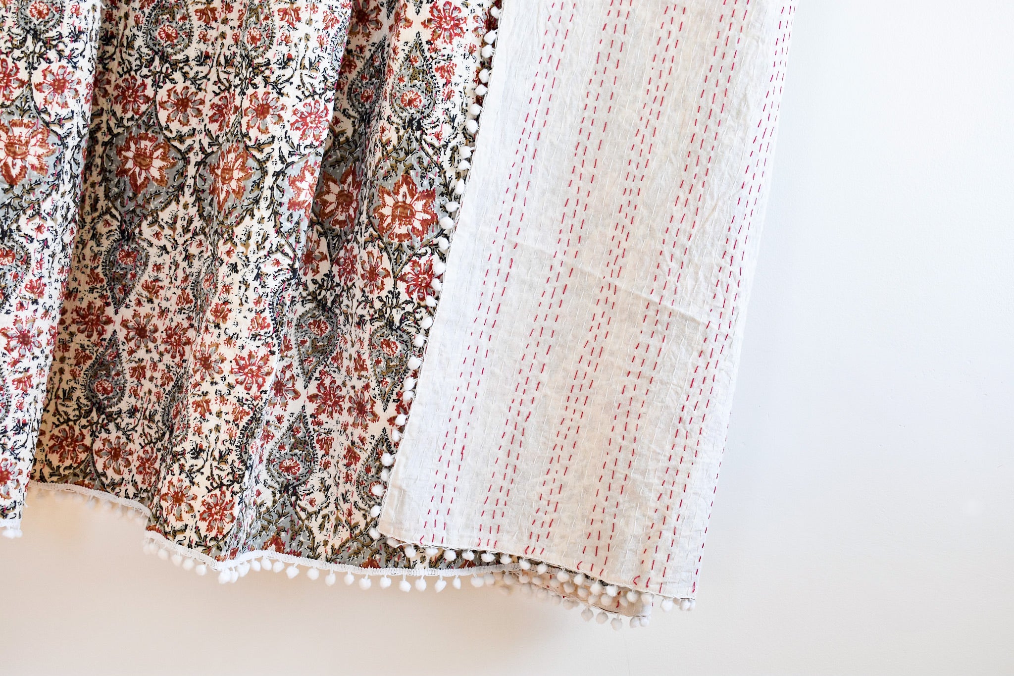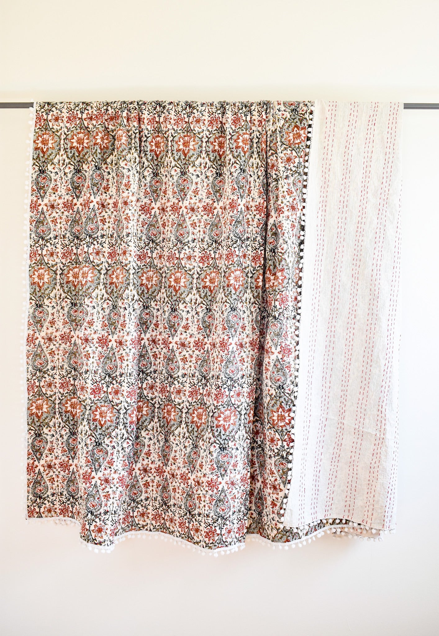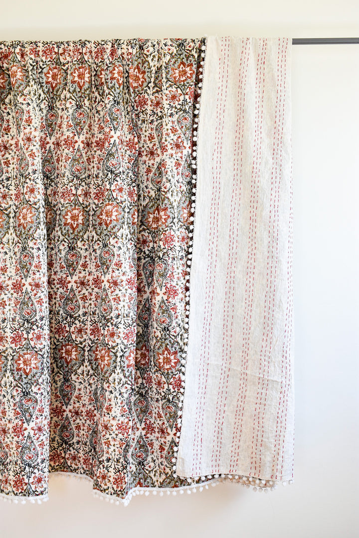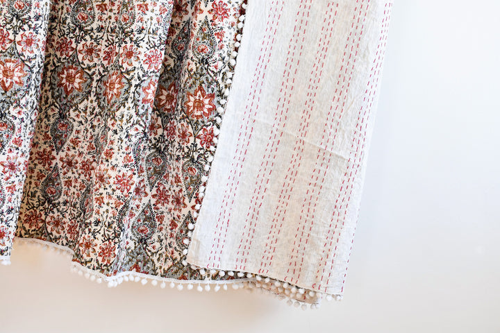 Claire Pom Pom Kantha Quilt - King/Queen Sized