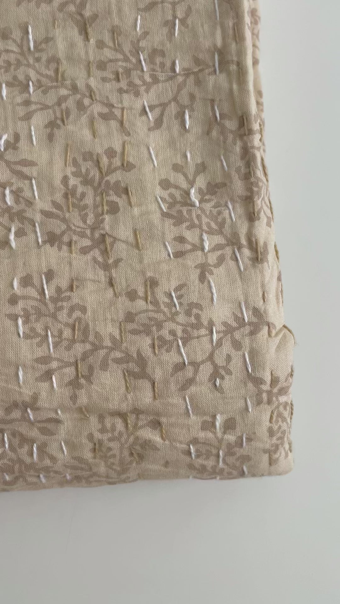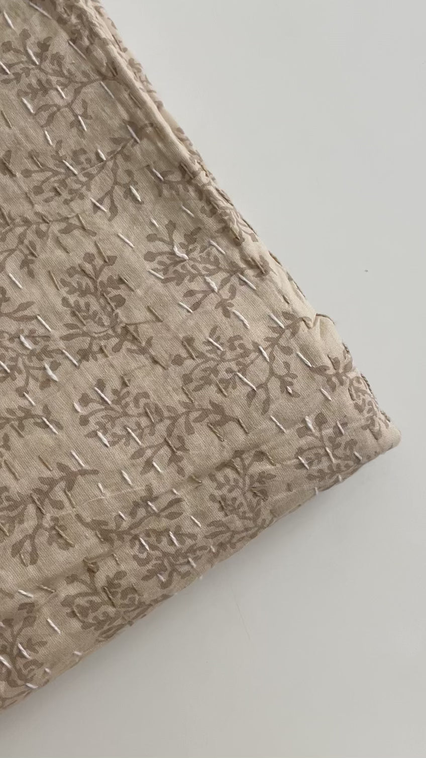 Margot Kantha Quilt in Beige, Taupe, Cream - King/Queen Sized