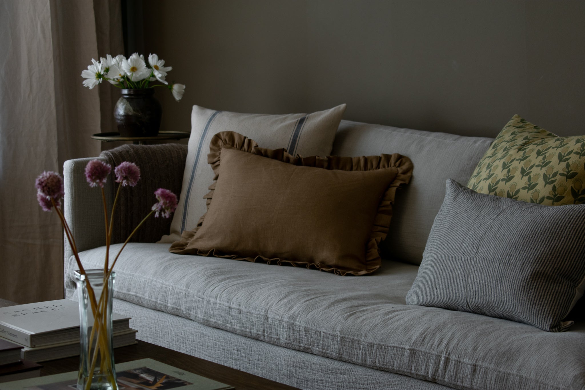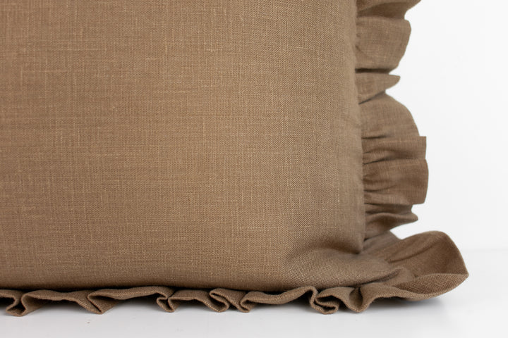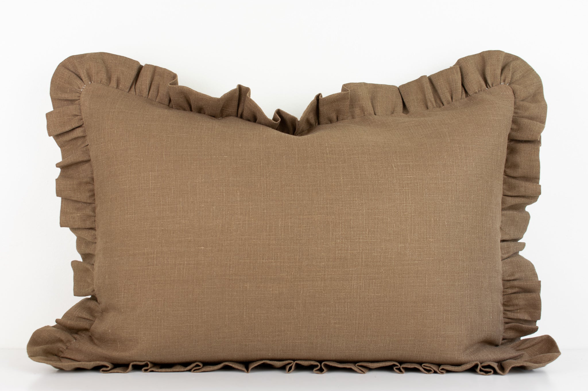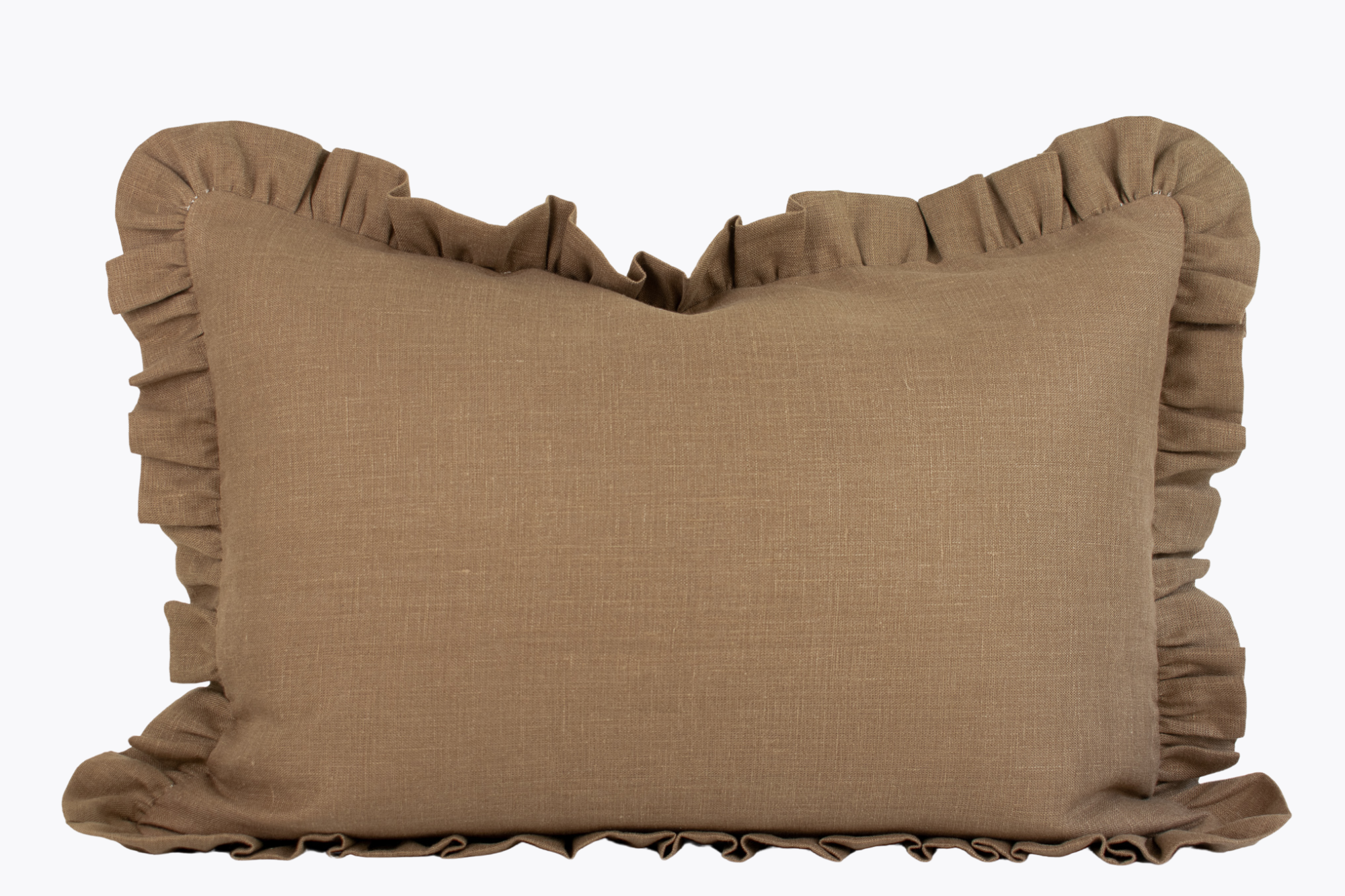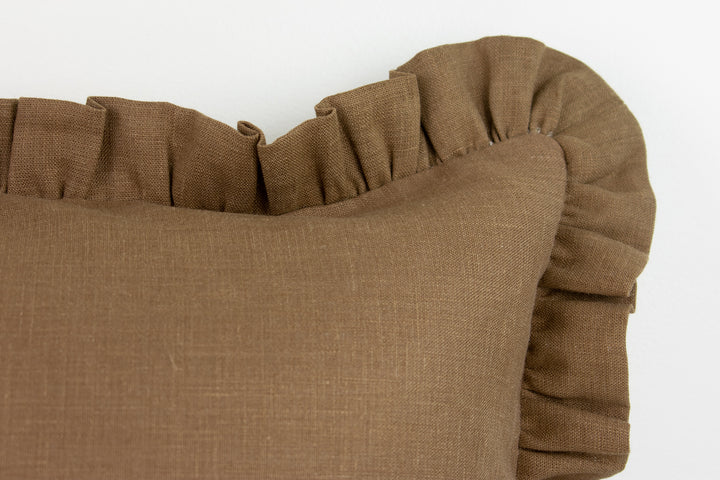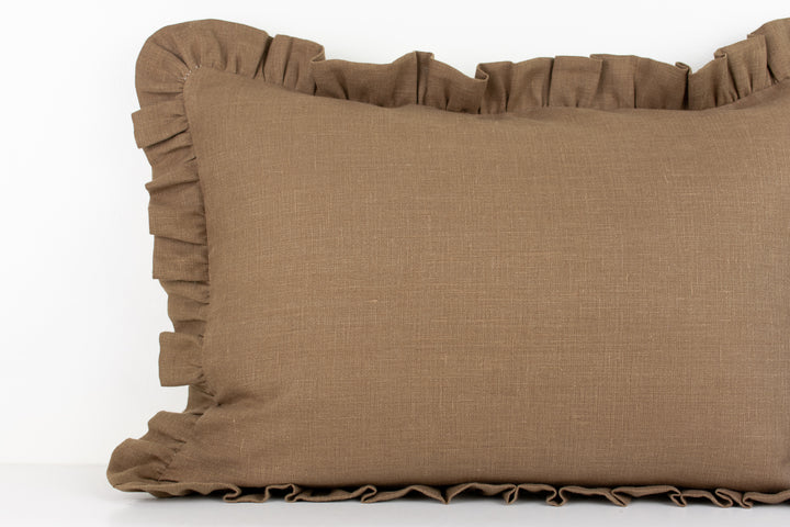 Ruffle Edge Linen Lumbar Pillow Cover - Ginger