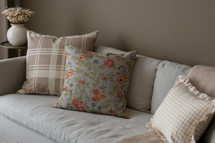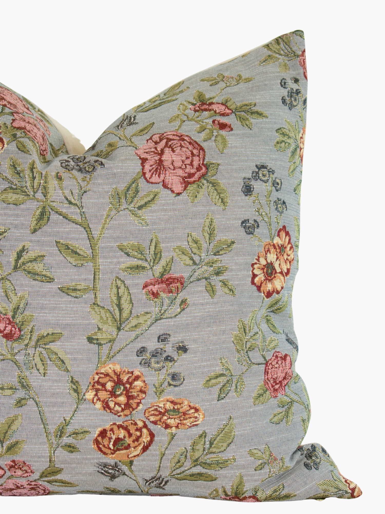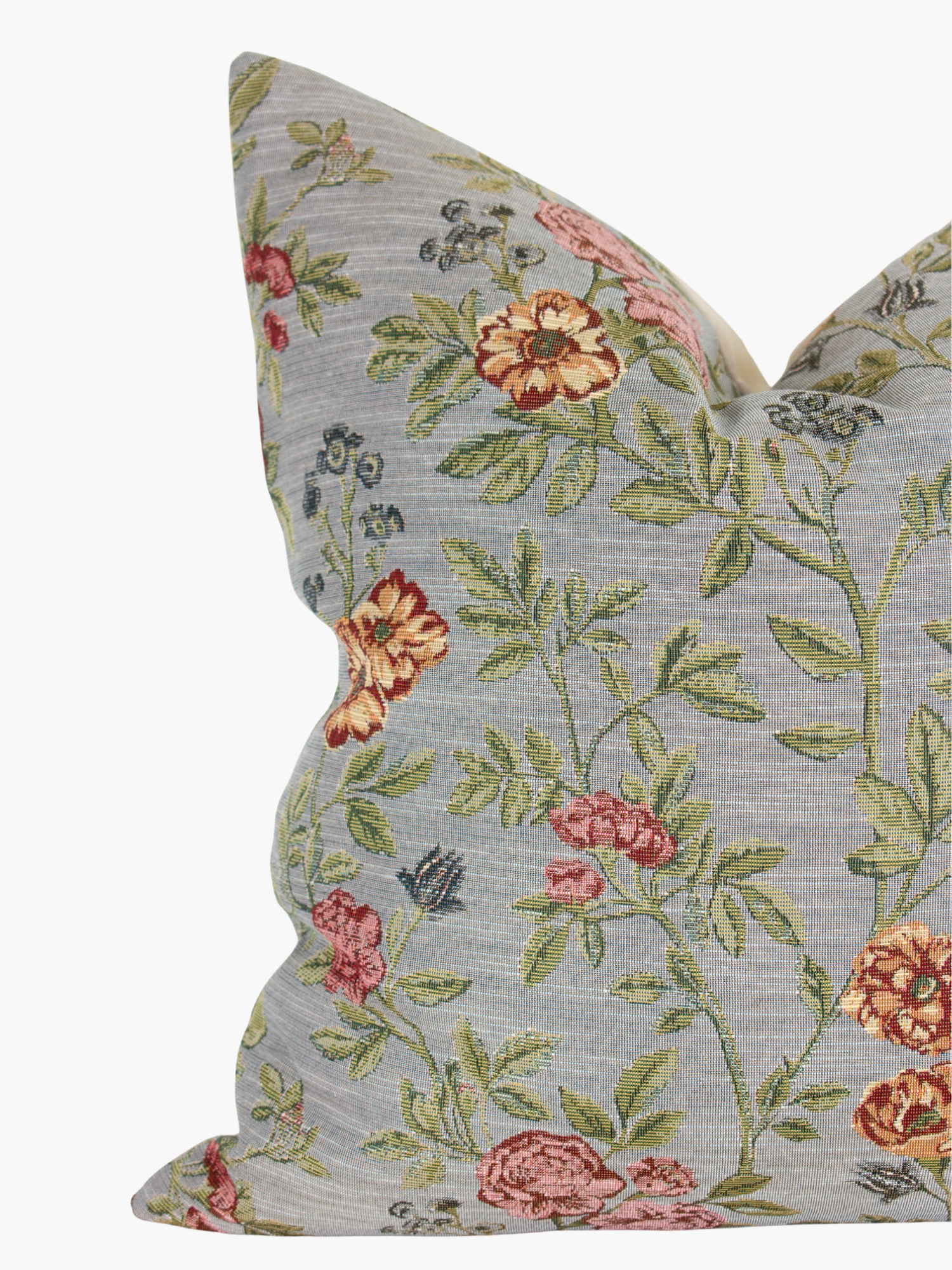 Give your home a rich pop of character and texture with this whimsical, beautiful designer pillow cover featuring a delicate woven floral tapestry design on a soft cotton blend