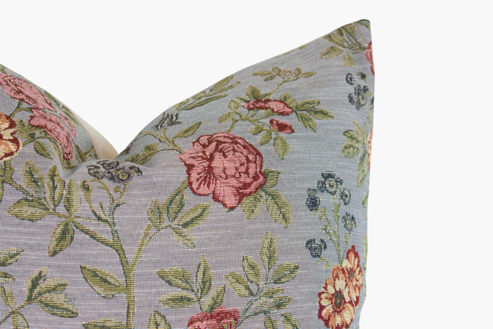 Wellesley Woven Tapestry Floral Pillow Cover - Slate Blue