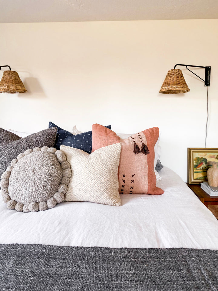 Because these pillows are made by hand using natural materials, each may have a variation in color and size and may give by an inch or two. Minor signs of fading, discoloration or other imperfections are not considered flaws but add to the authenticity and charm of these beautiful home goods.