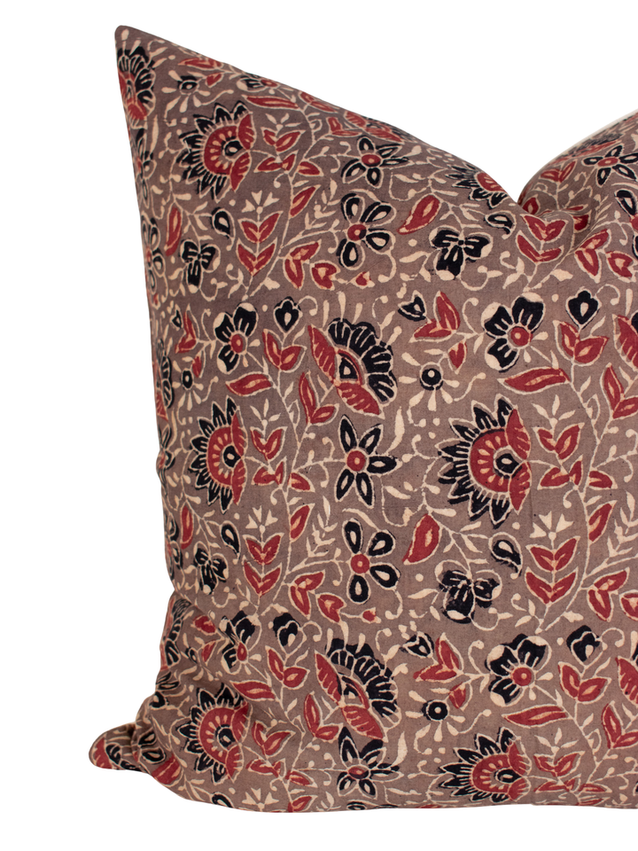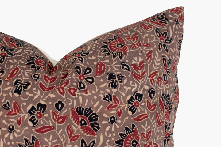 Vintage Indian Block Print Pillow Cover - Nutmeg, Rust, Black