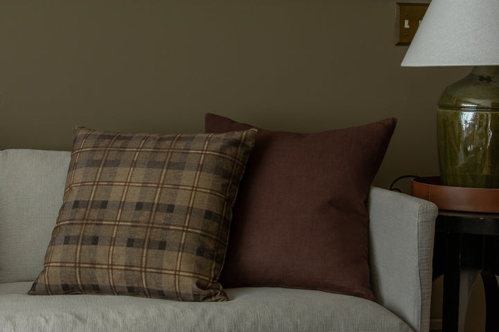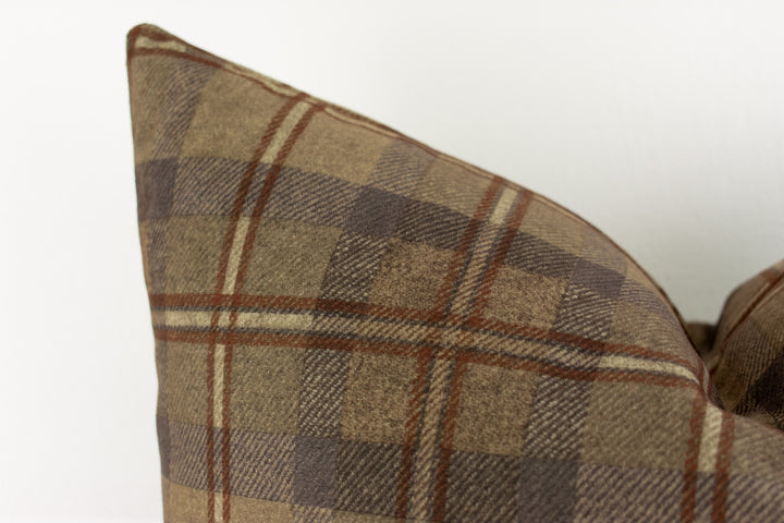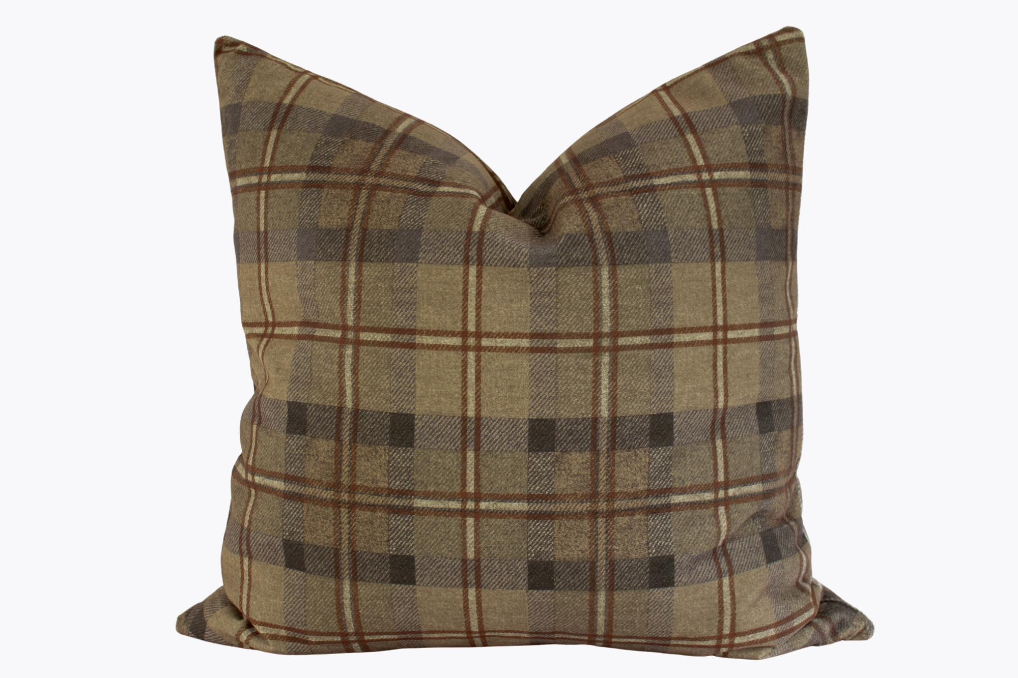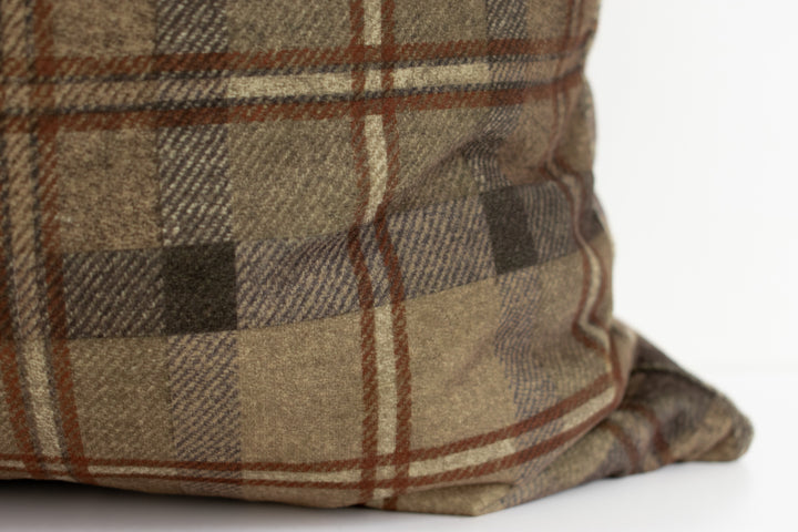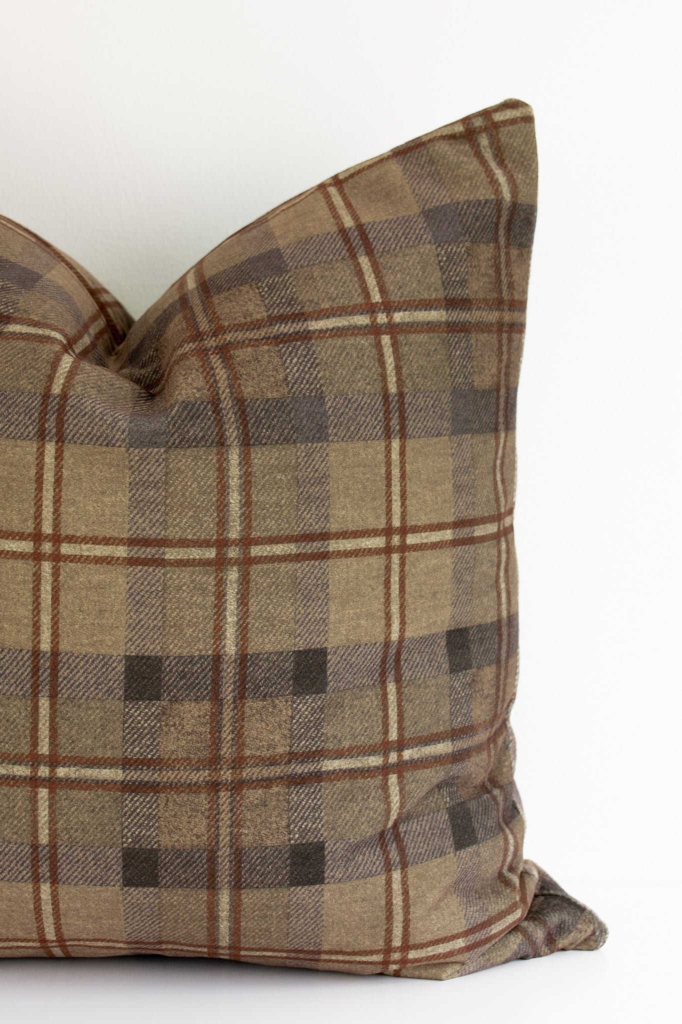 Lancaster Plaid Velvet Pillow Cover - Khaki, Charcoal, Brown