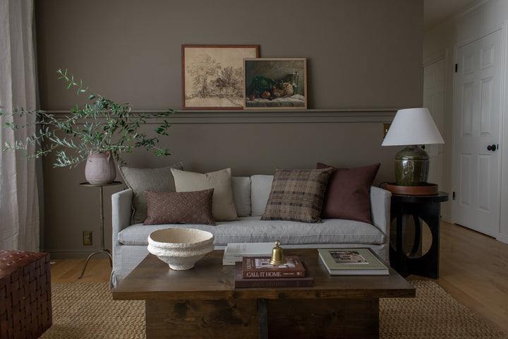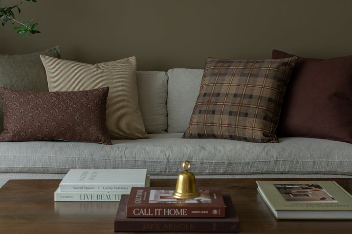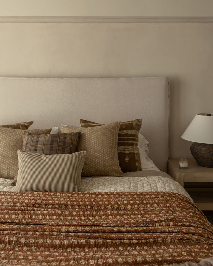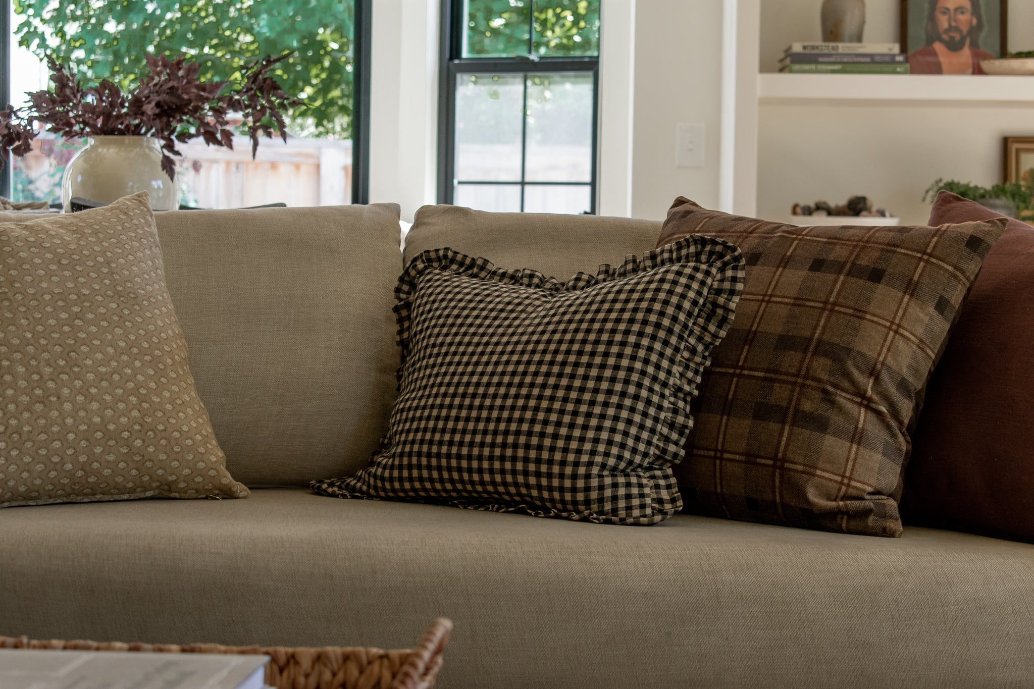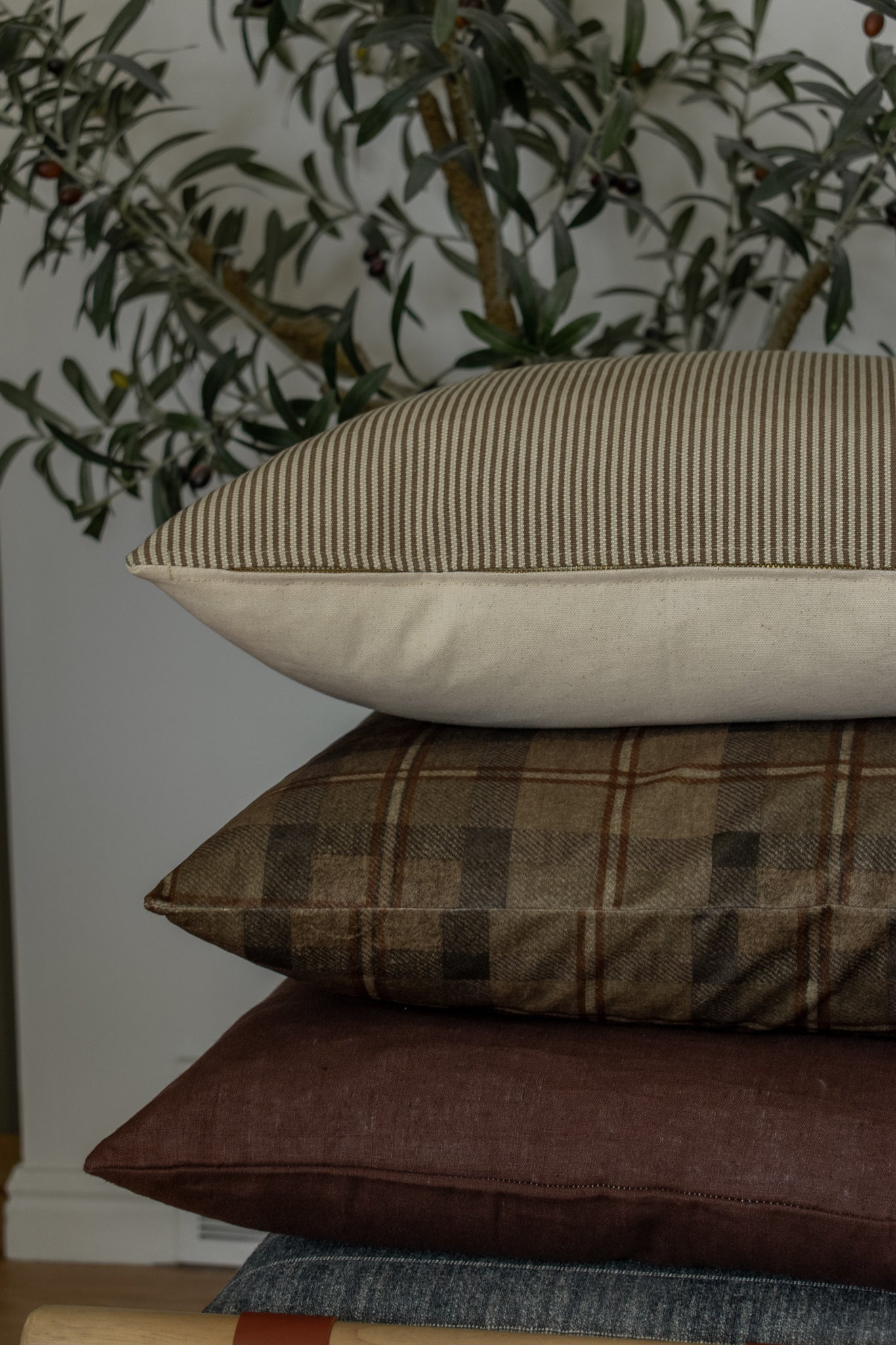Lancaster Plaid Velvet Pillow Cover - Khaki, Charcoal, Brown