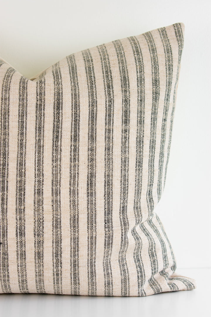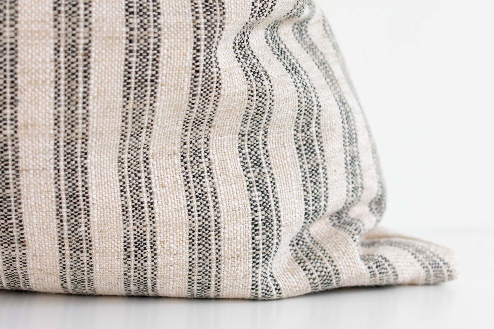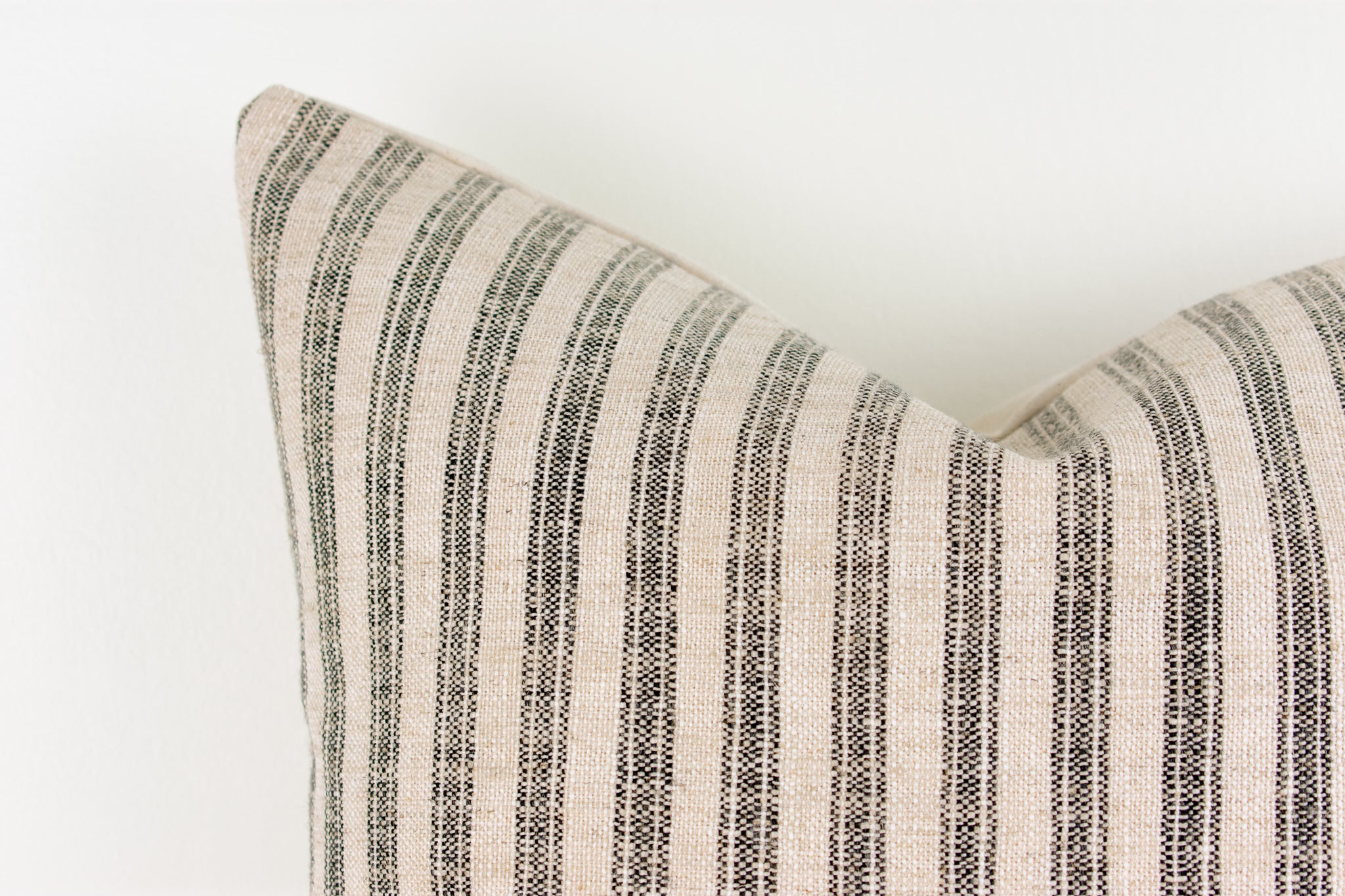 Ashton Ticking Stripe Jute Pillow Cover - Ivory and Charcoal